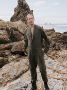 The IDIS Mens linen jumpsuit in Stone, is constructed from a mid weight linen.