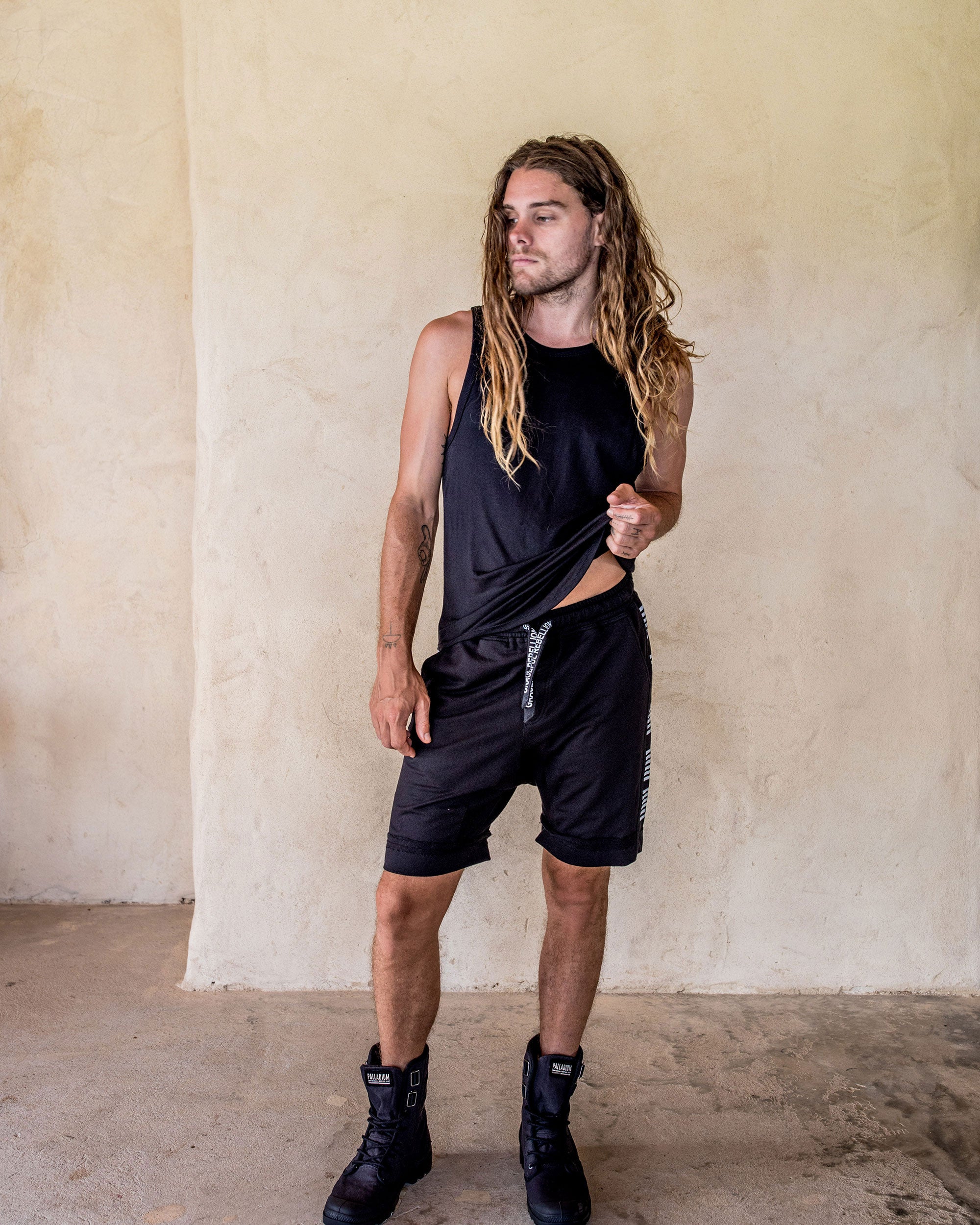 GRacefull rebellion track shorts, constructed from cotton french terry, with deep side pockets, 2 slit back pockets, elasticised waist band and draw string waist.