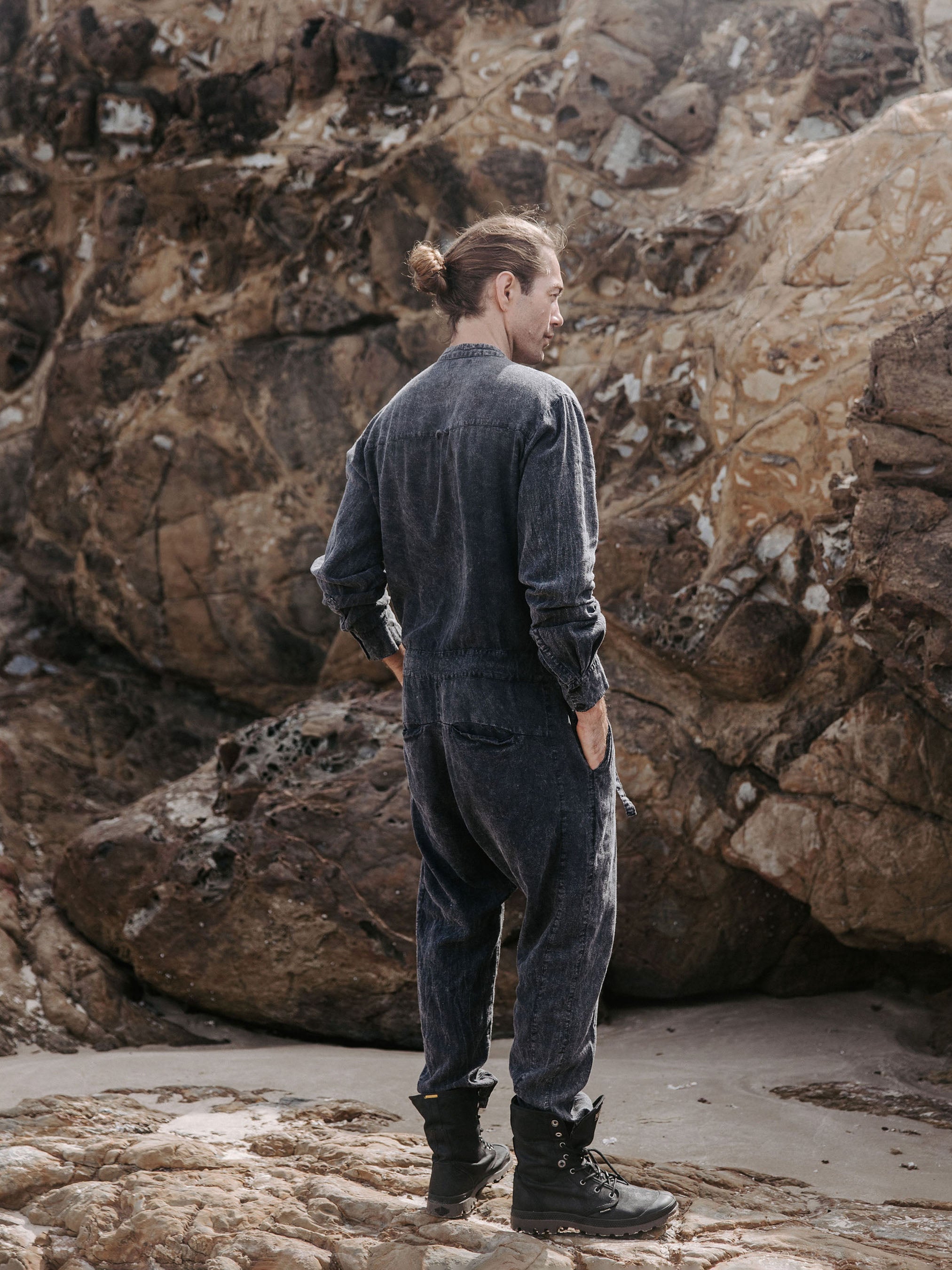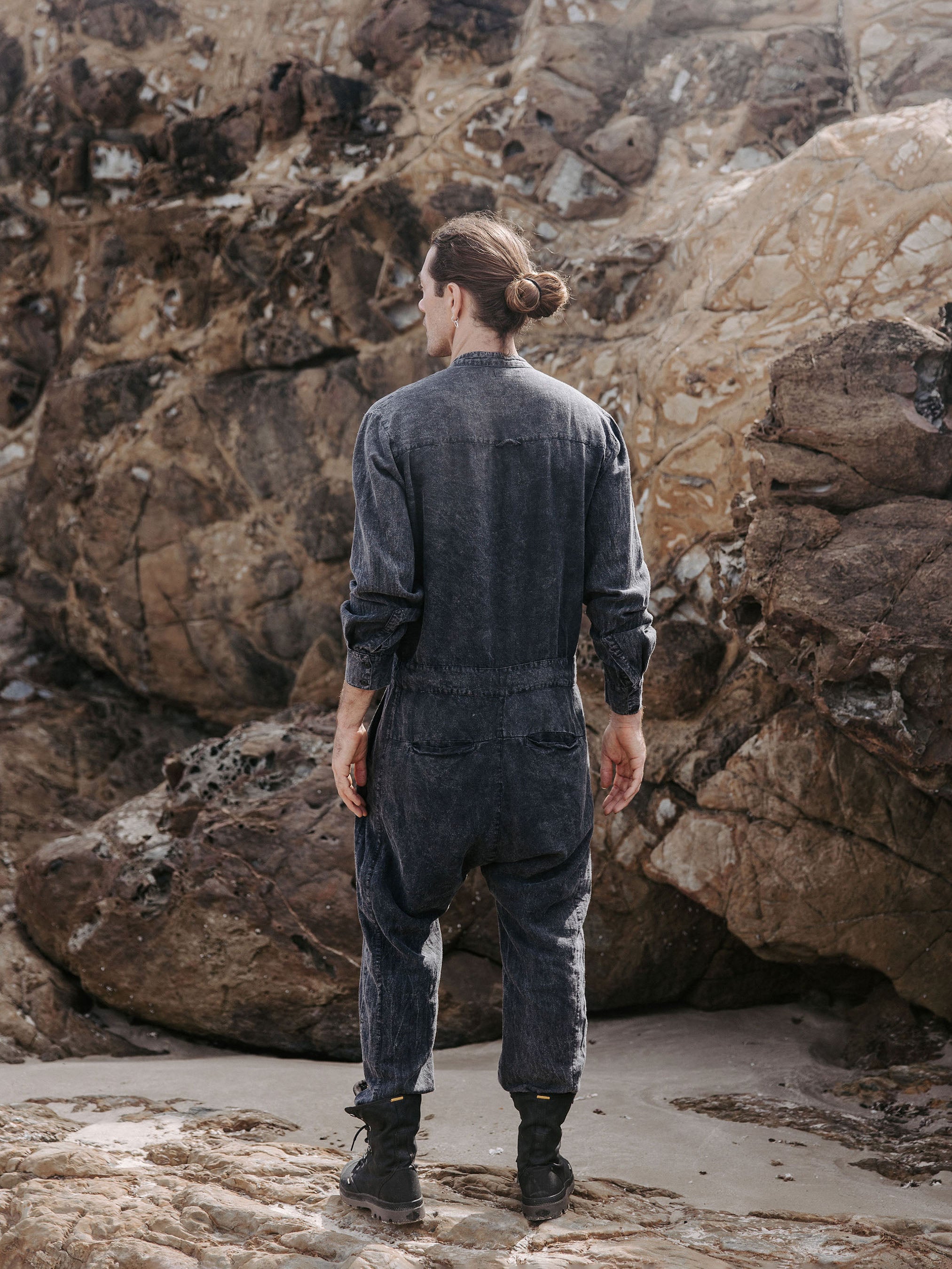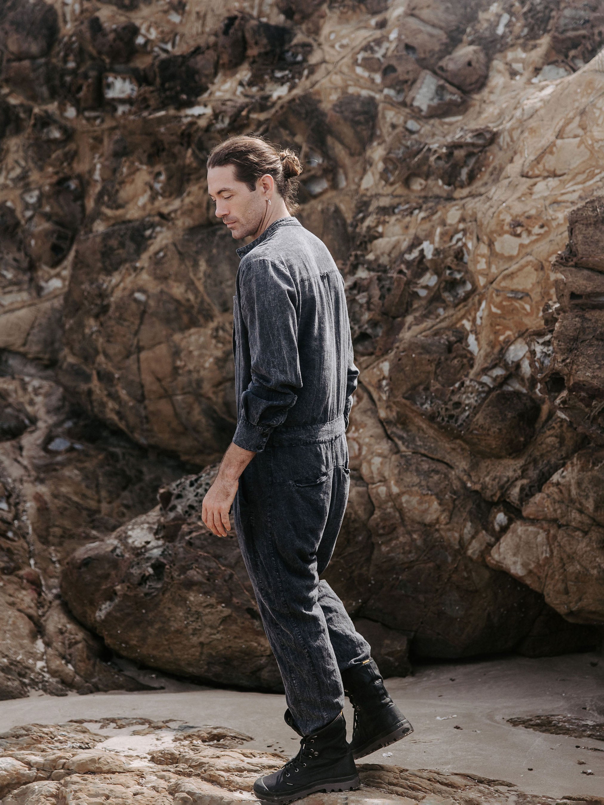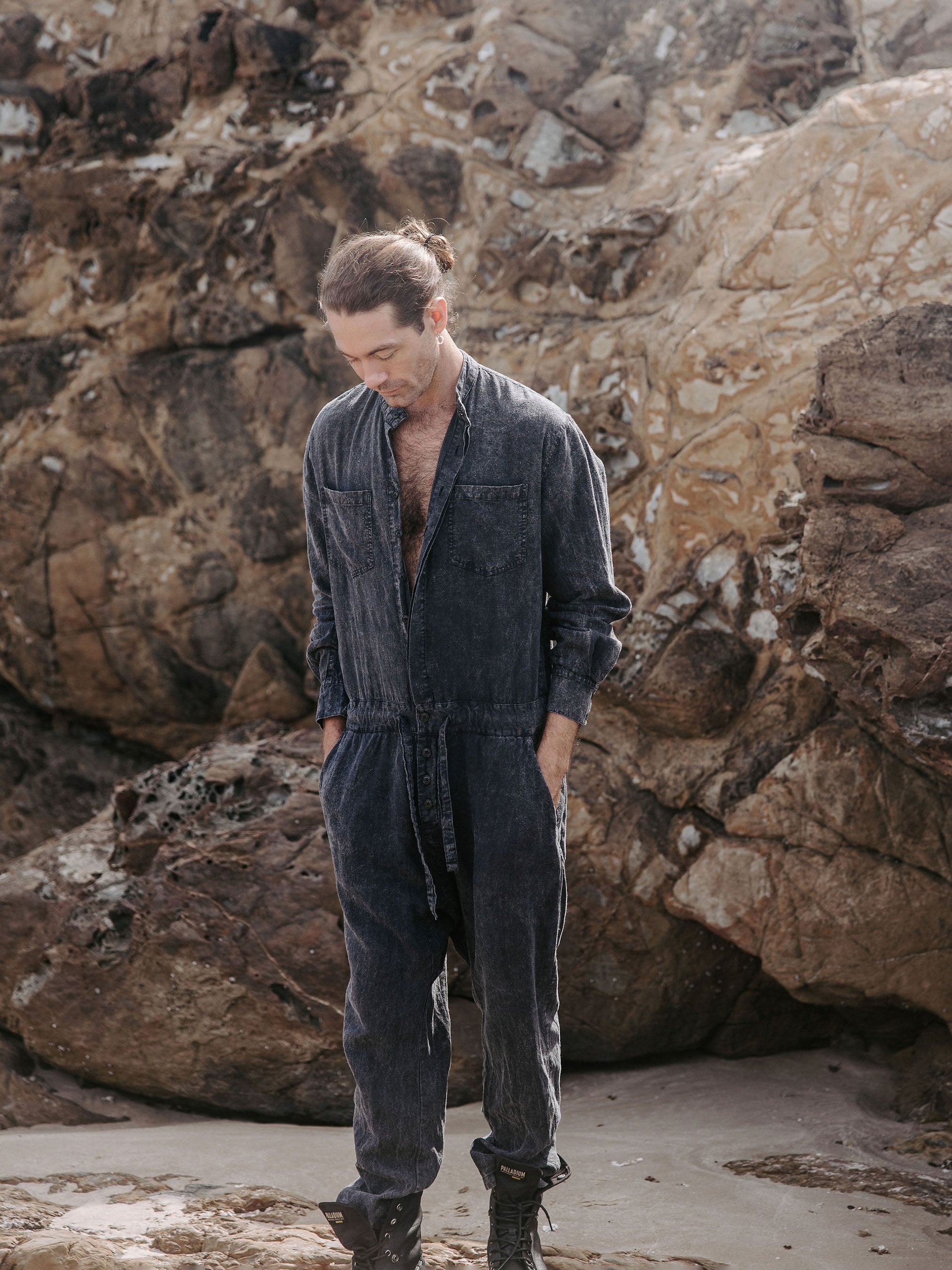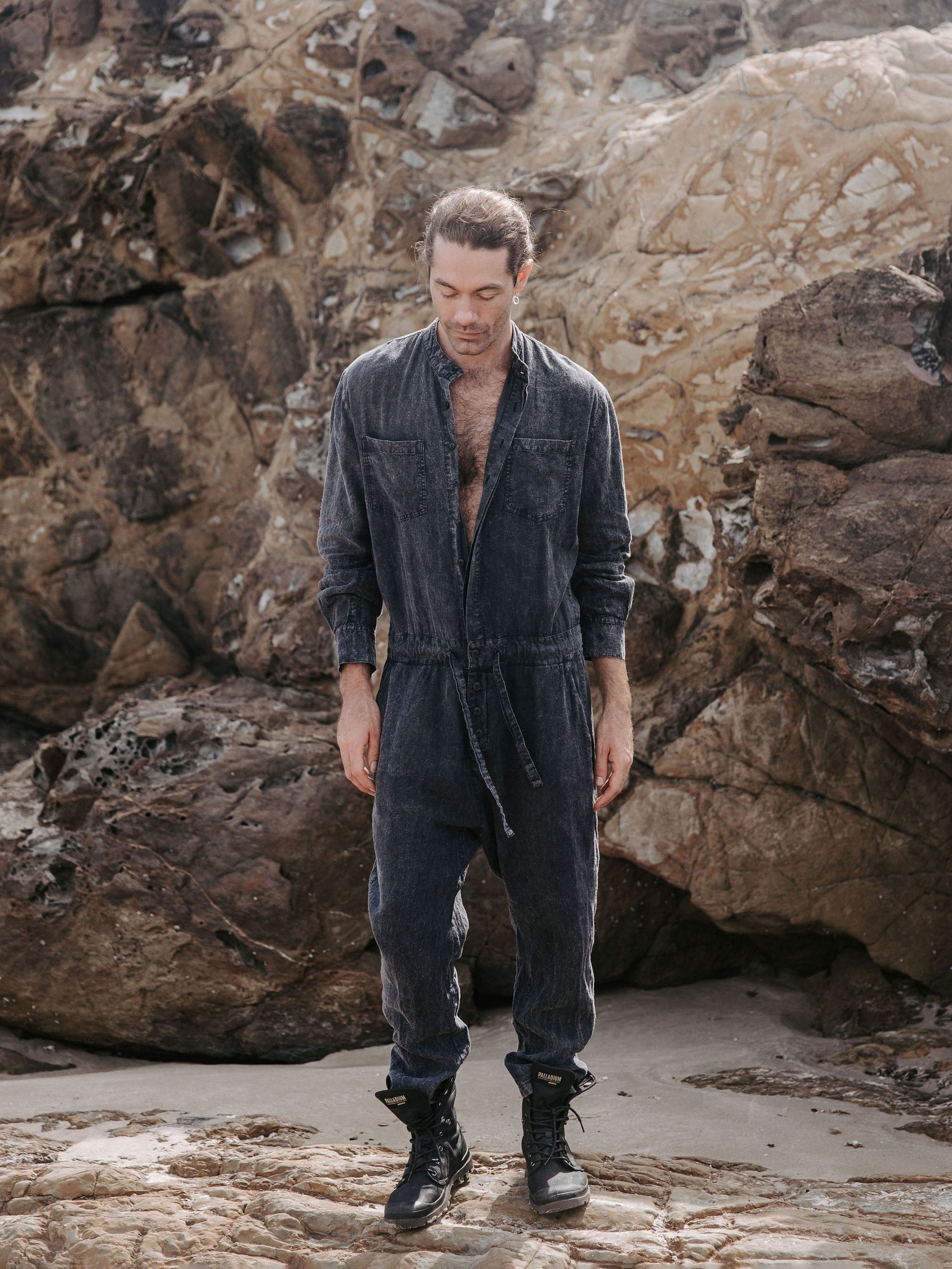 The IDIS Mens linen jumpsuit in Stone, is constructed from a mid weight linen.