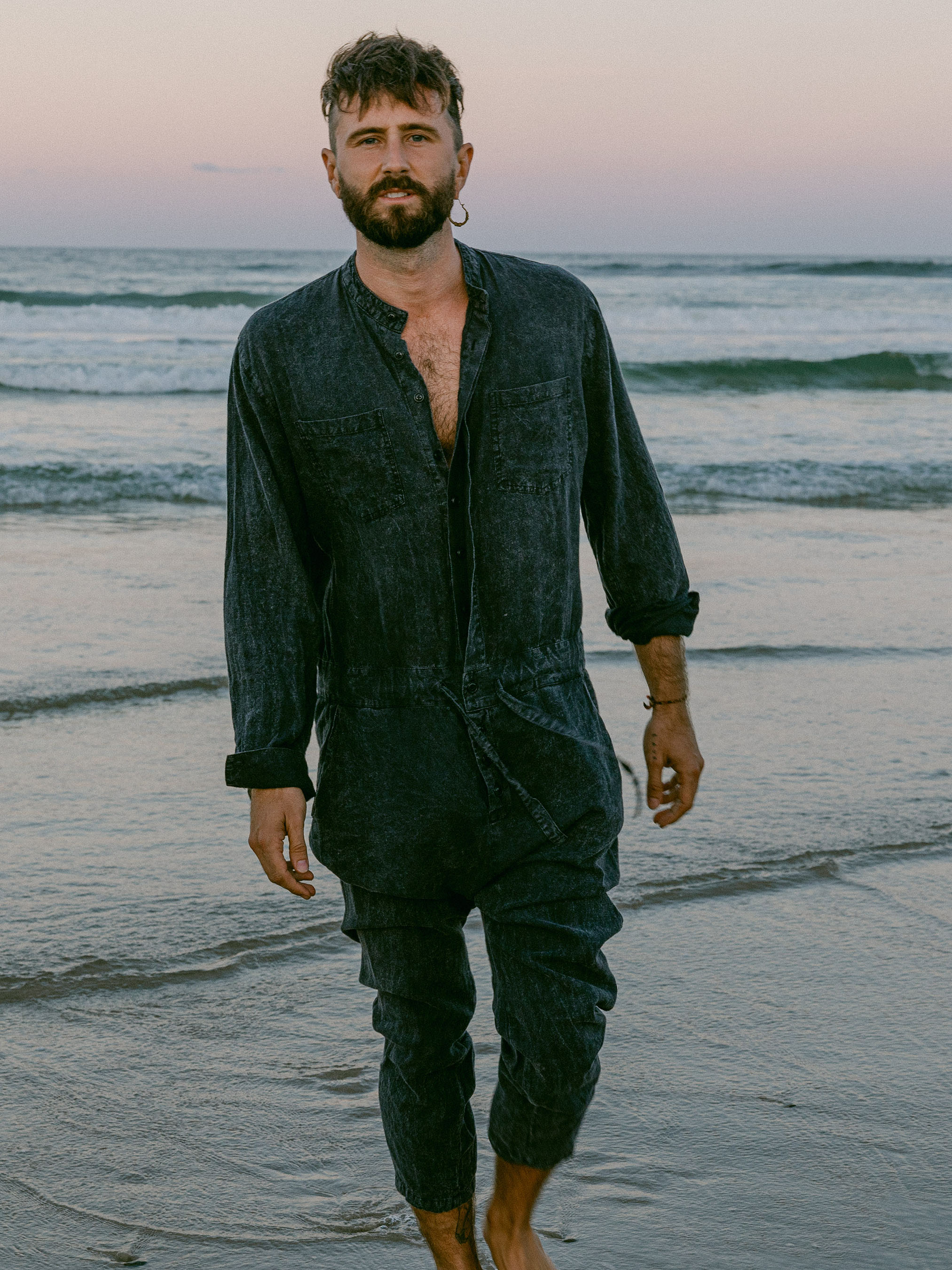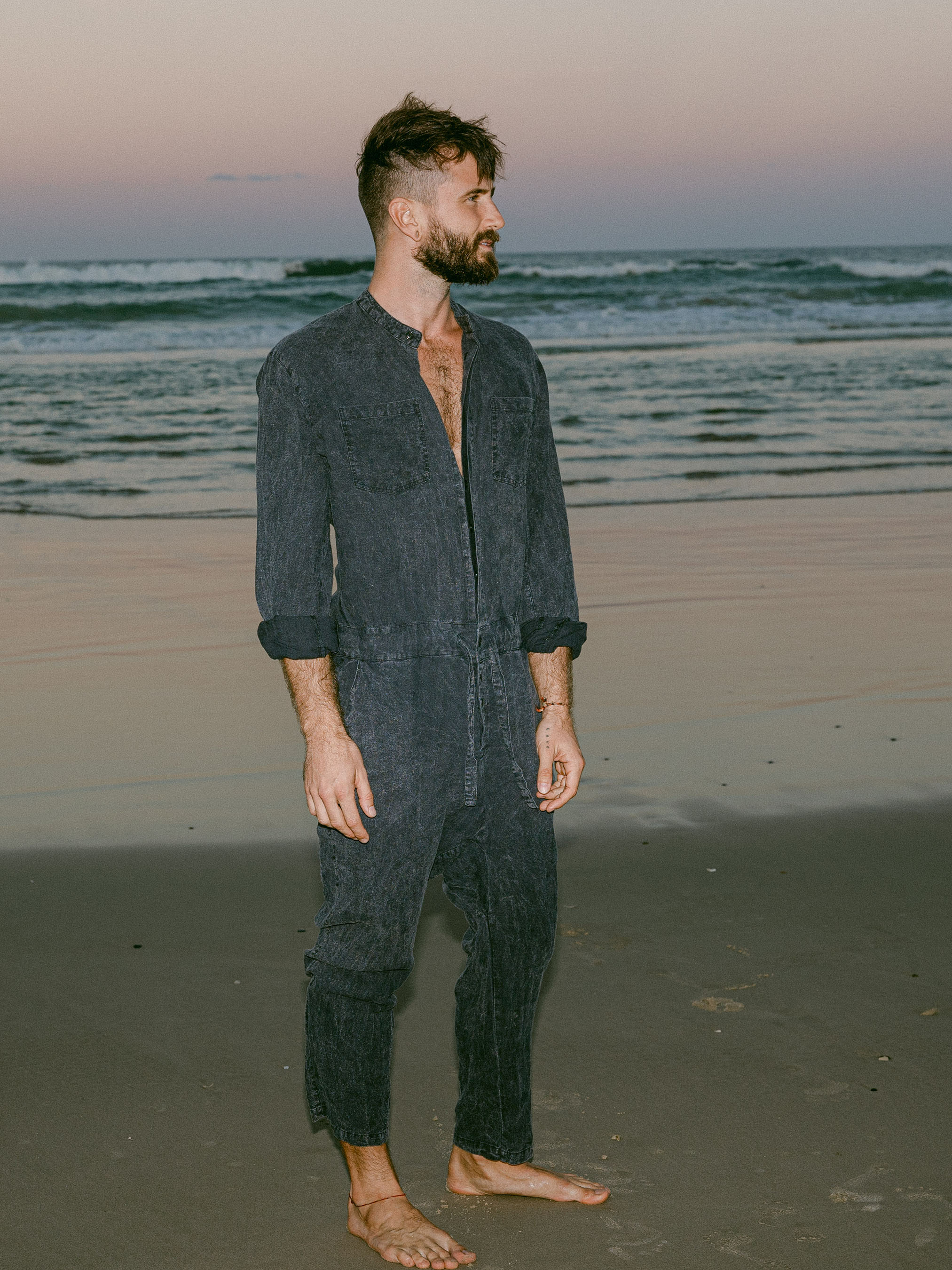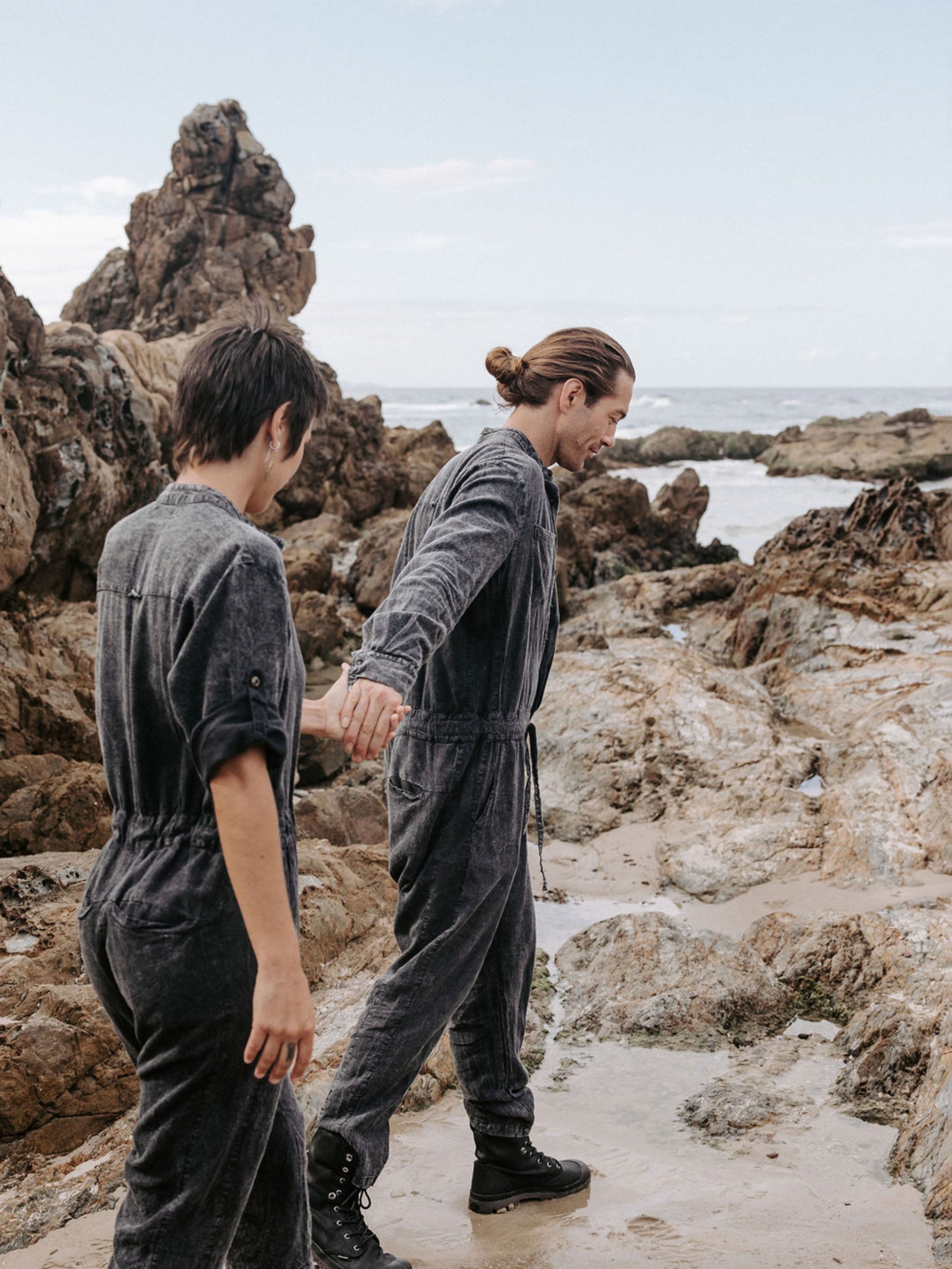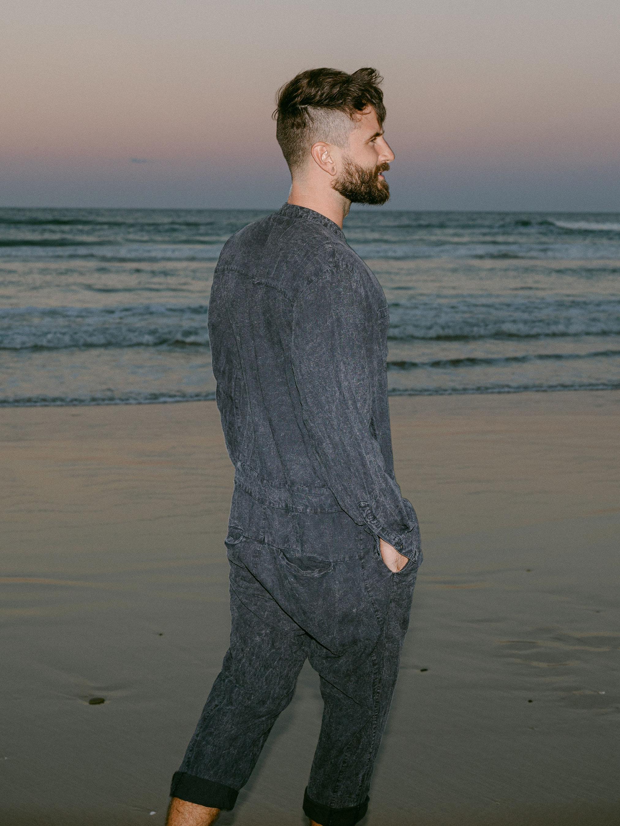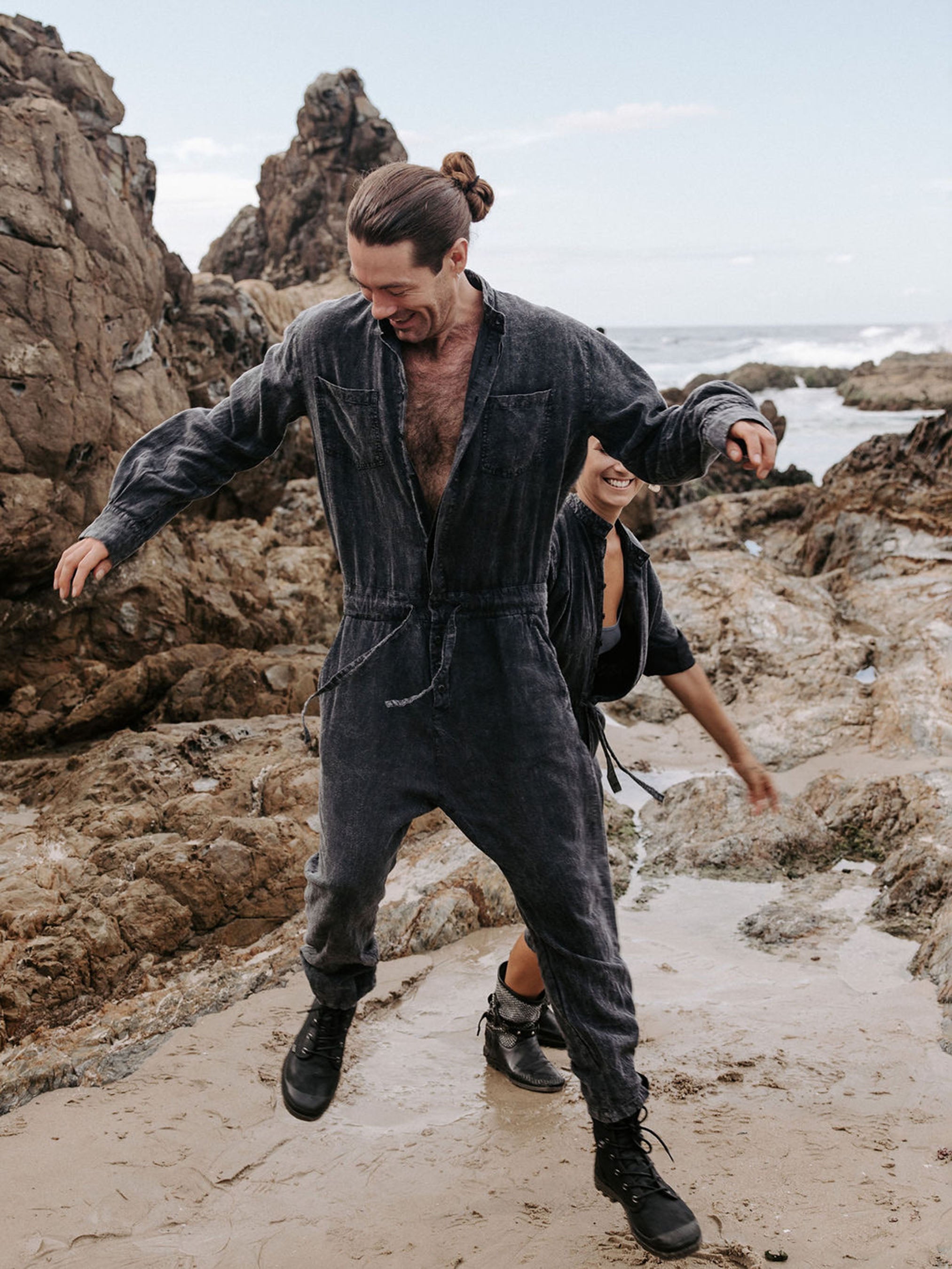 The IDIS Mens linen jumpsuit in Stone, is constructed from a mid weight linen.