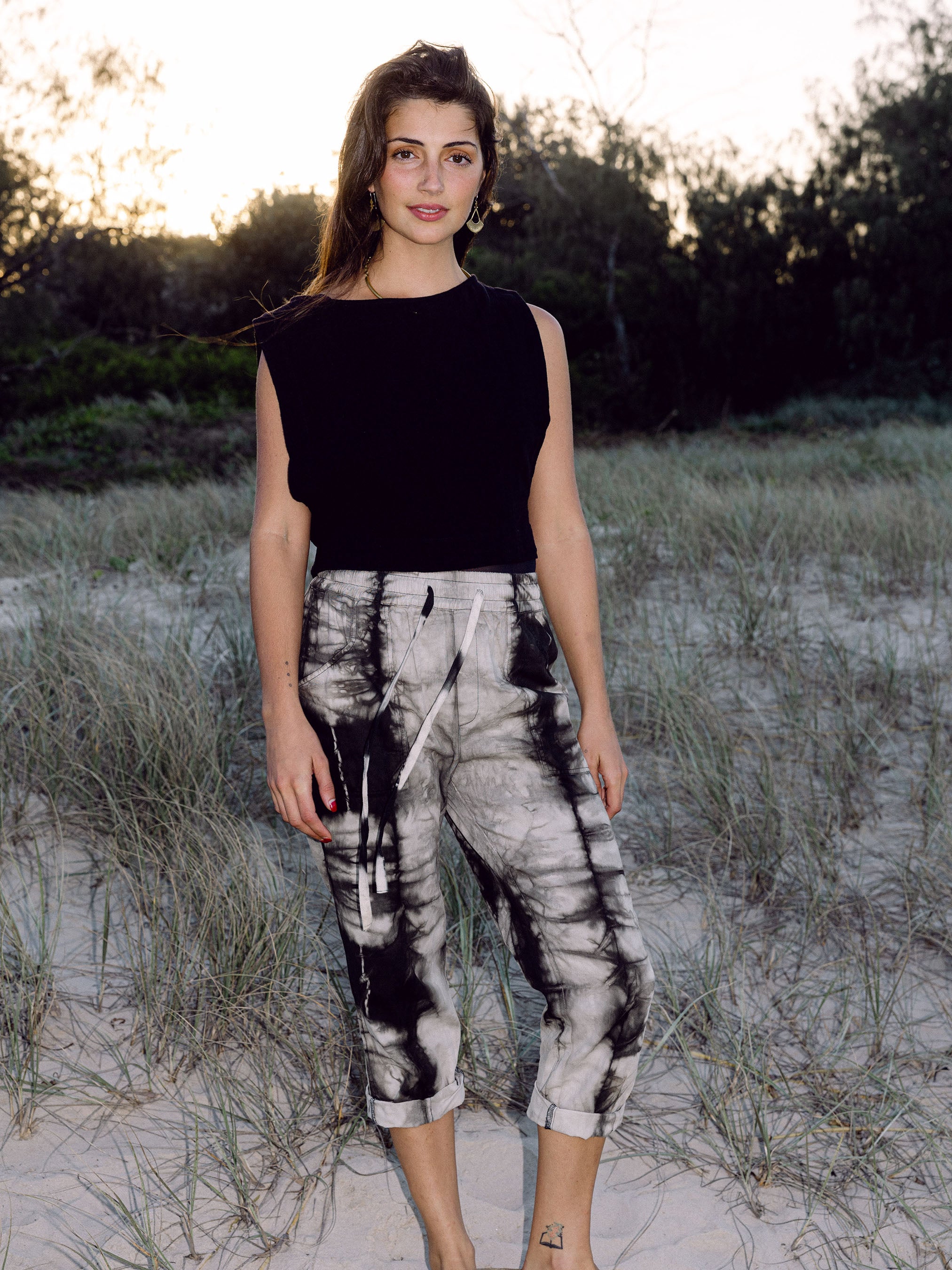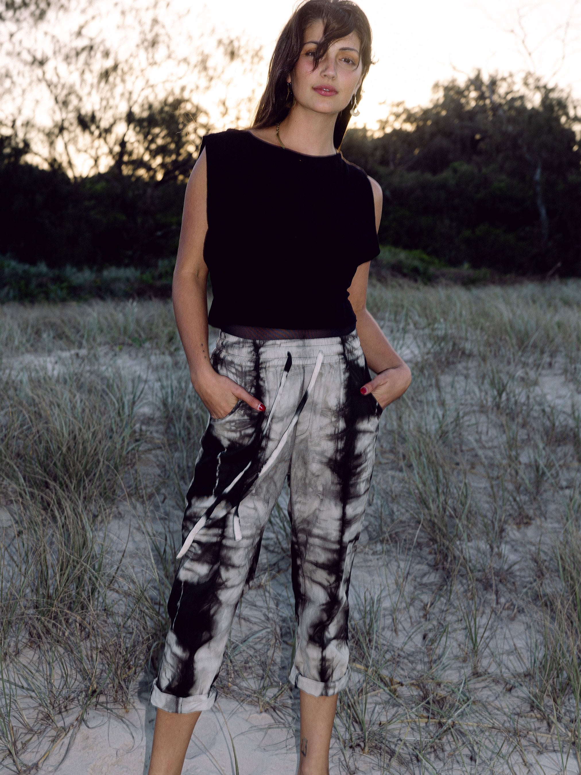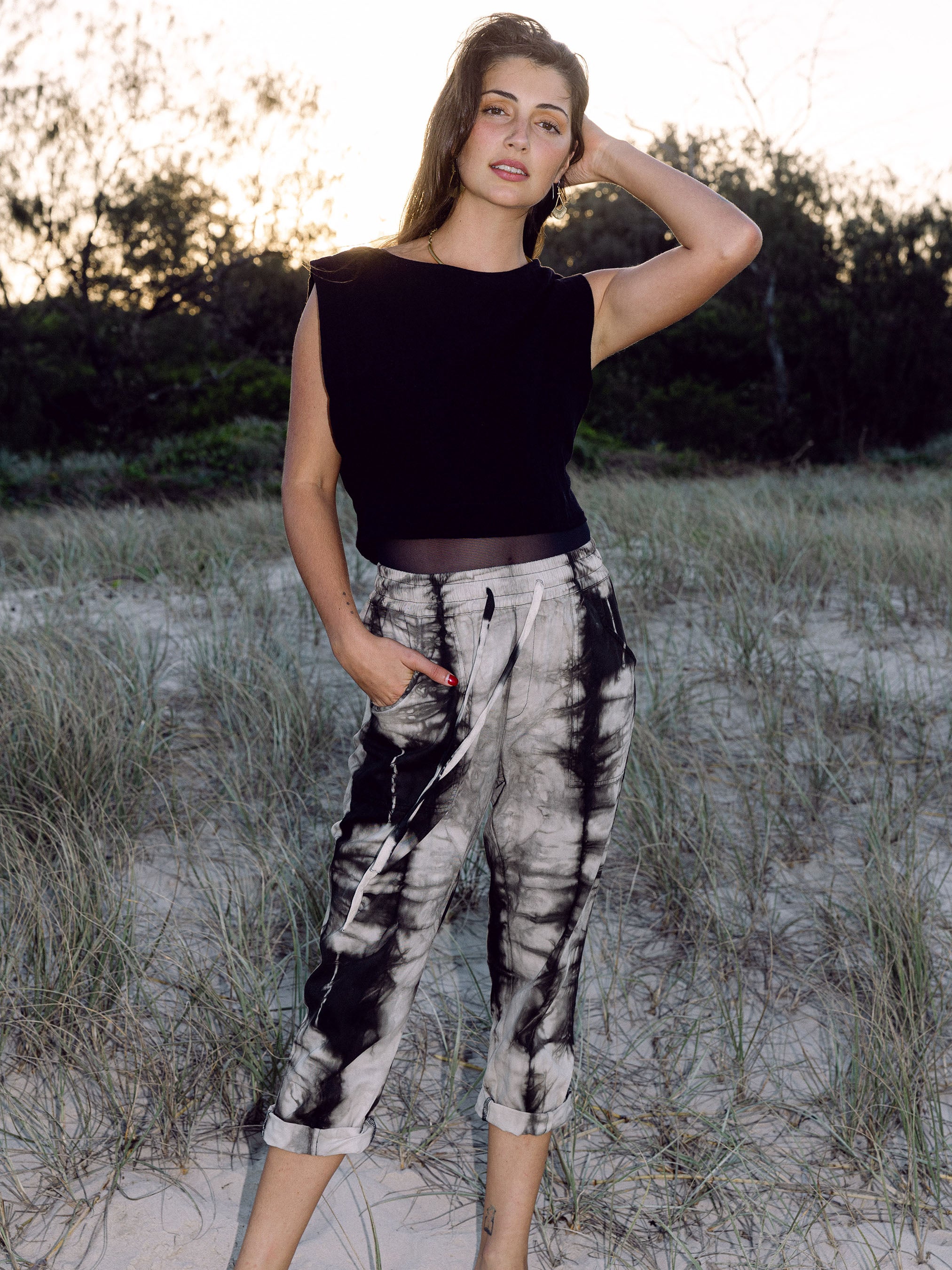 Dyed in a unique shibori style using Indian almond leaf as a plant dye.