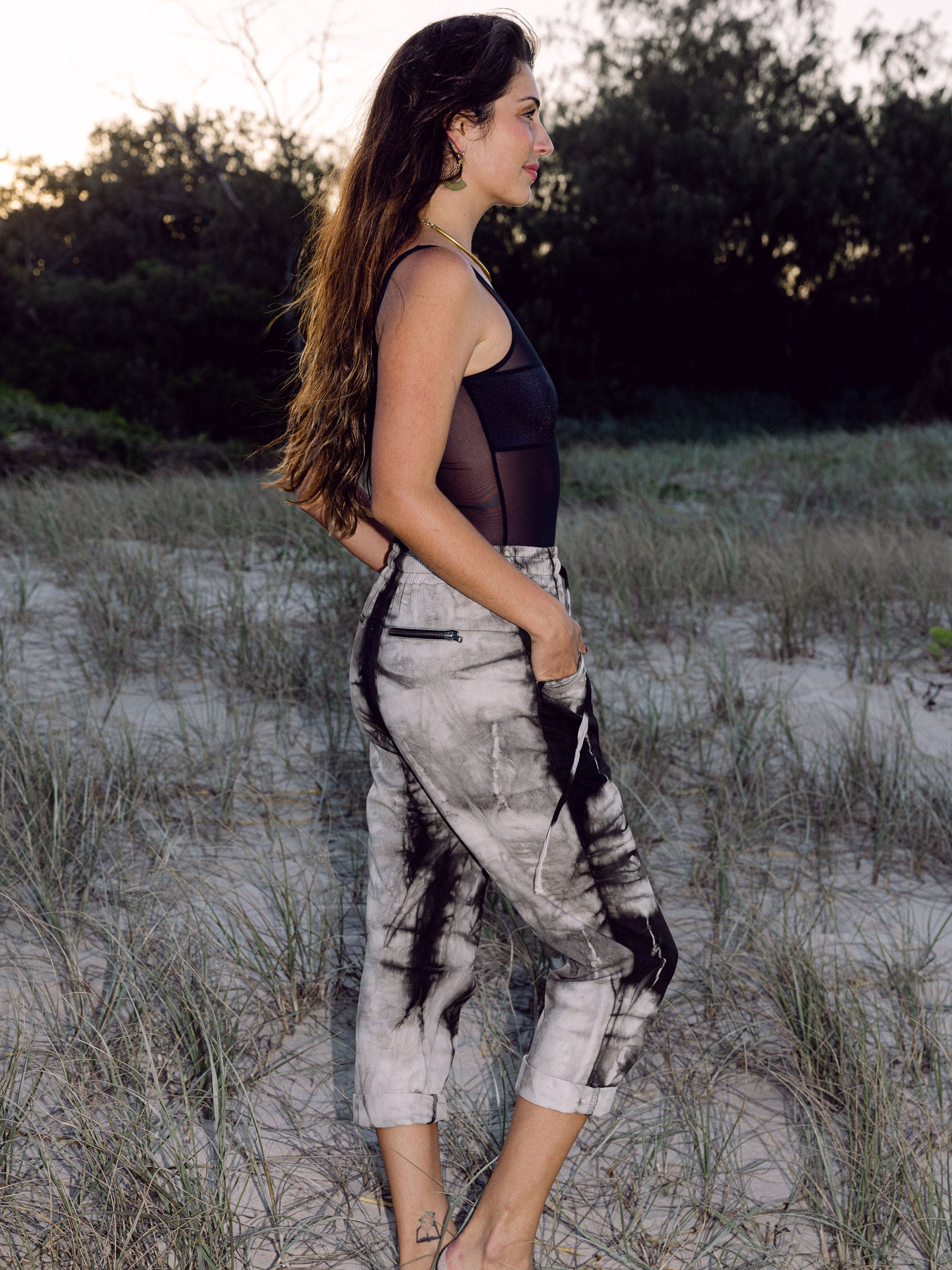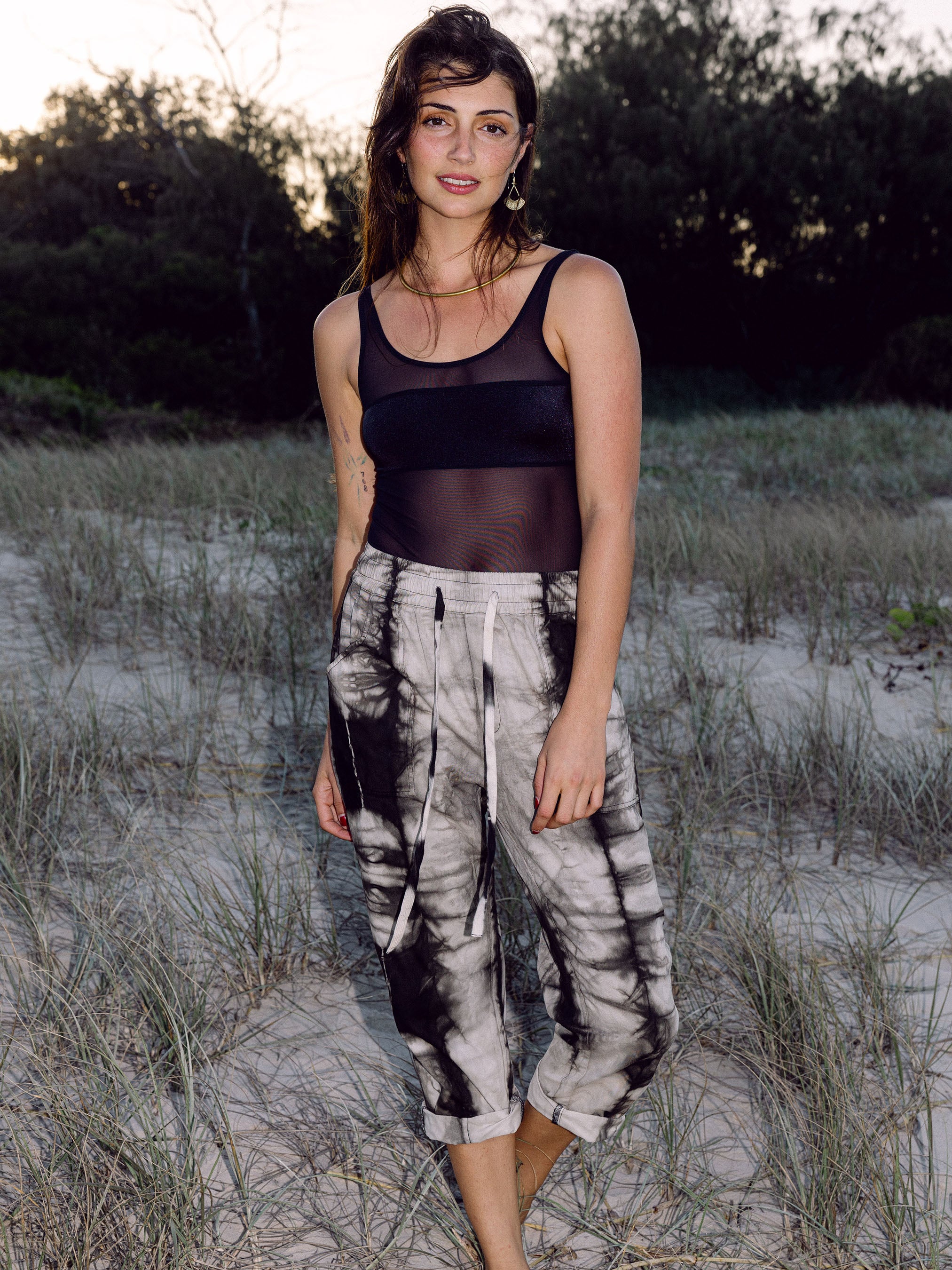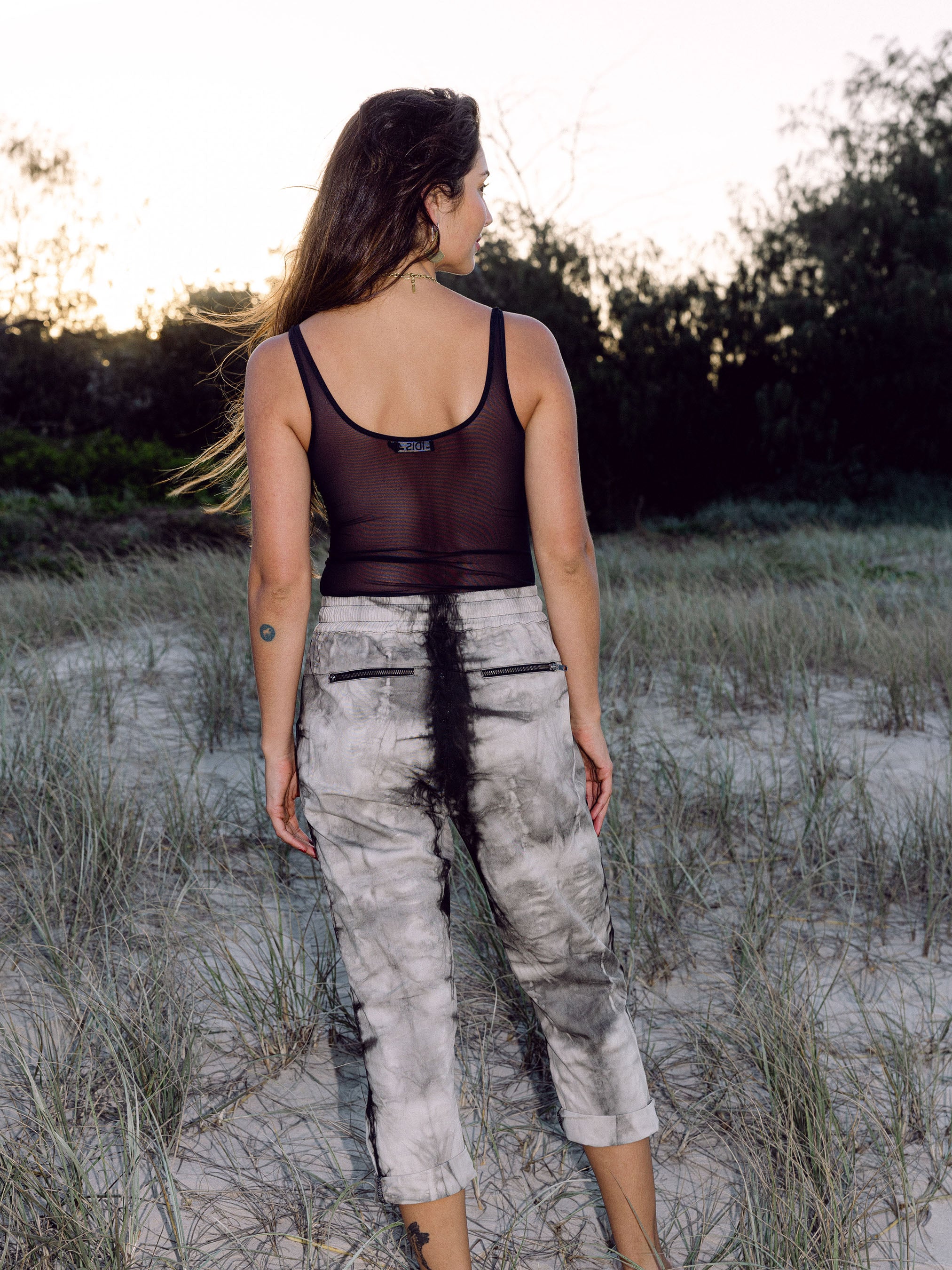 Dyed in a unique shibori style using Indian almond leaf as a plant dye.