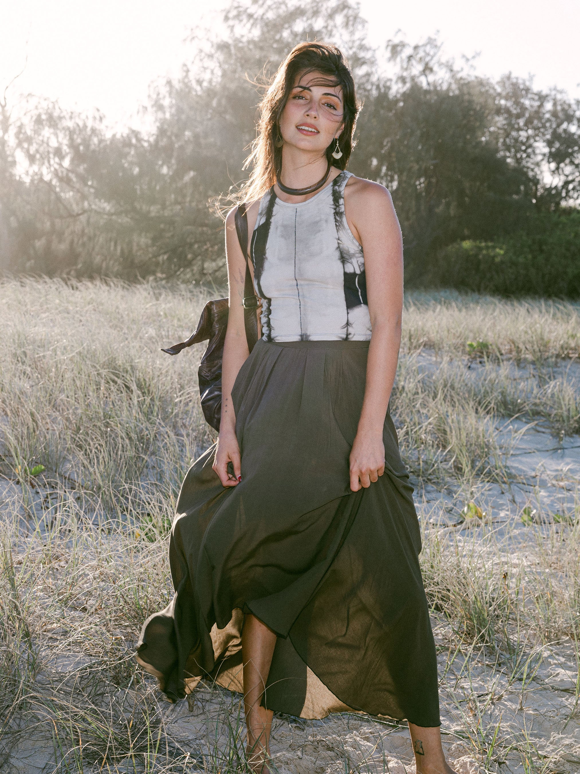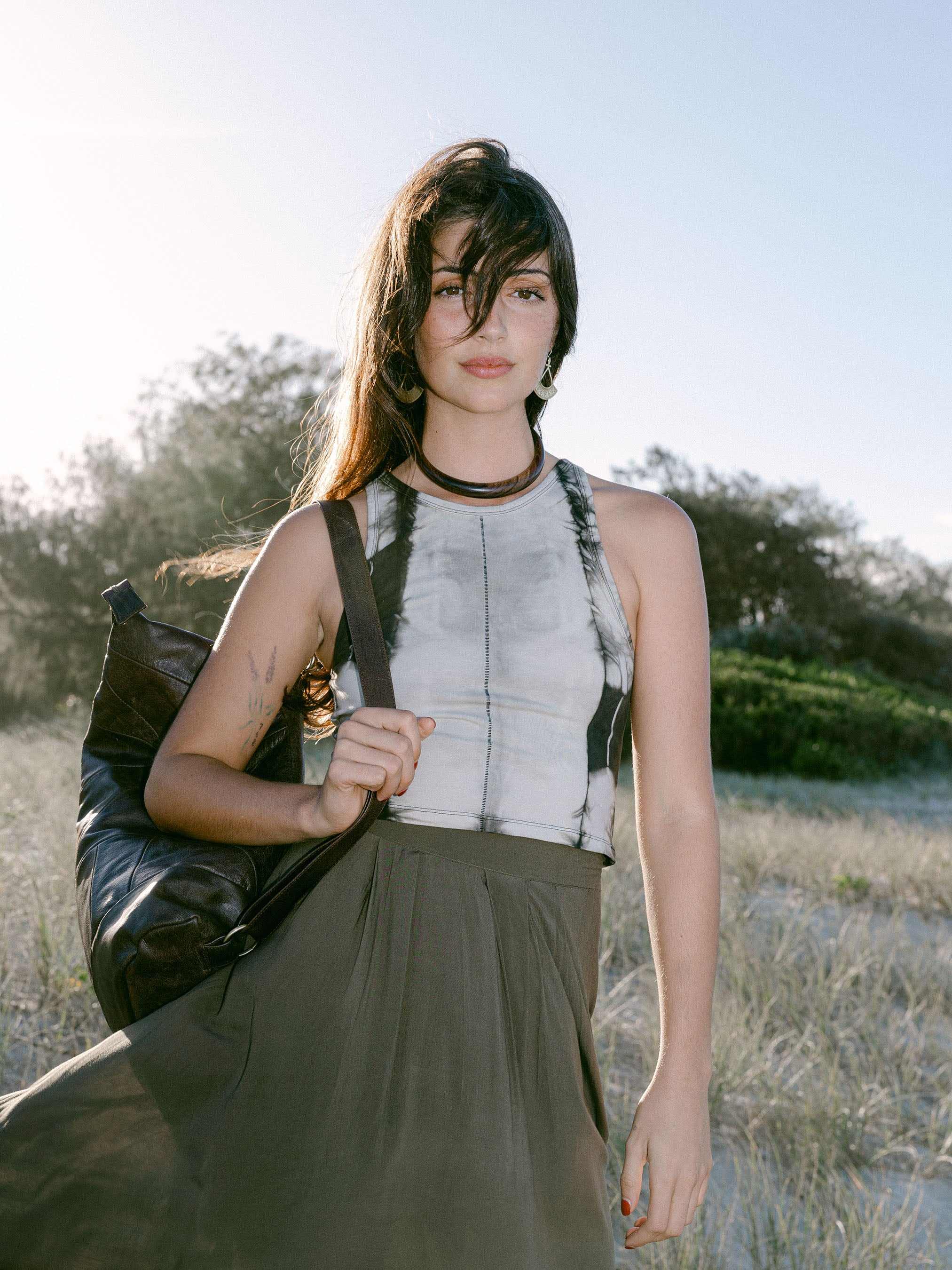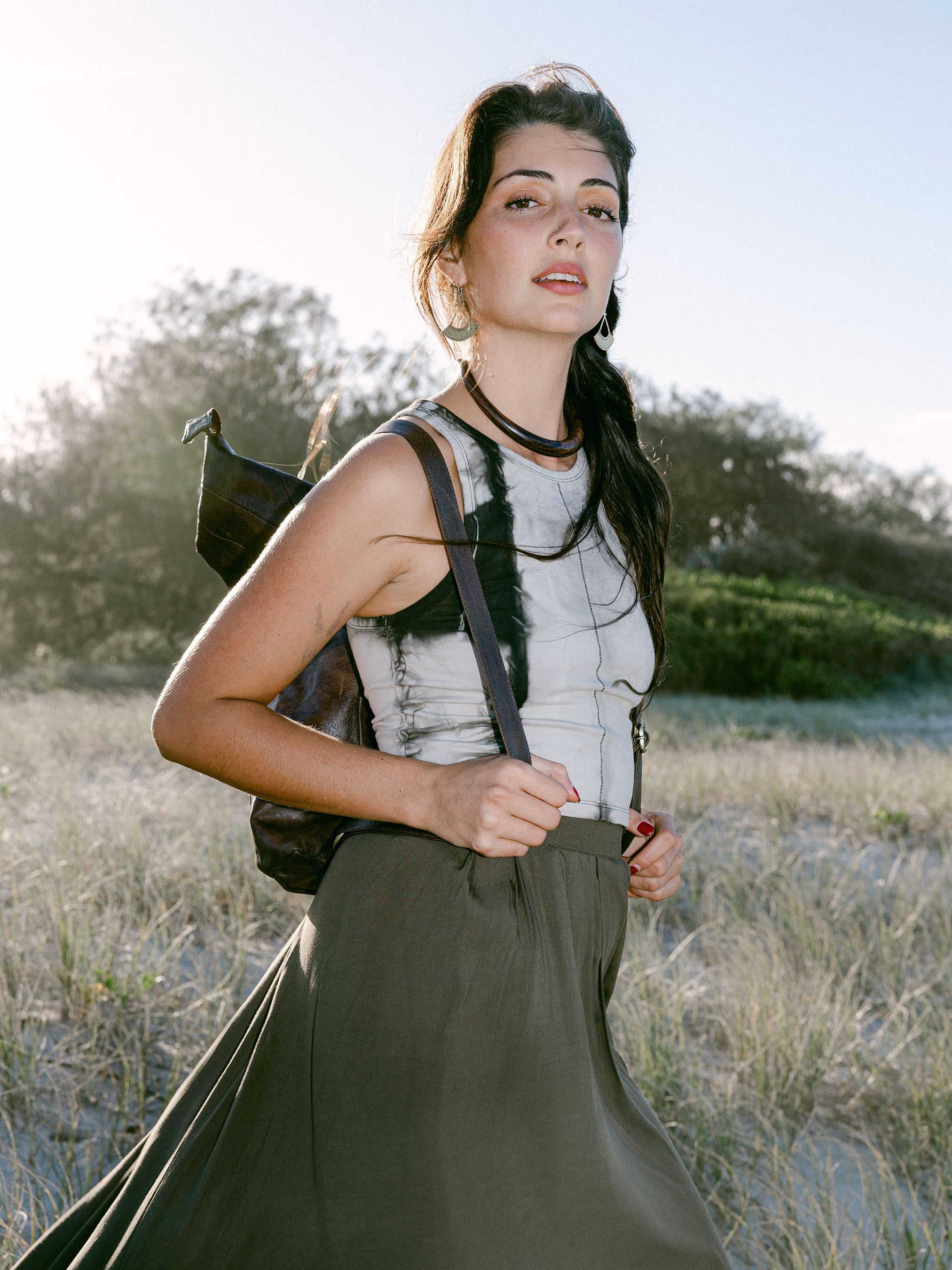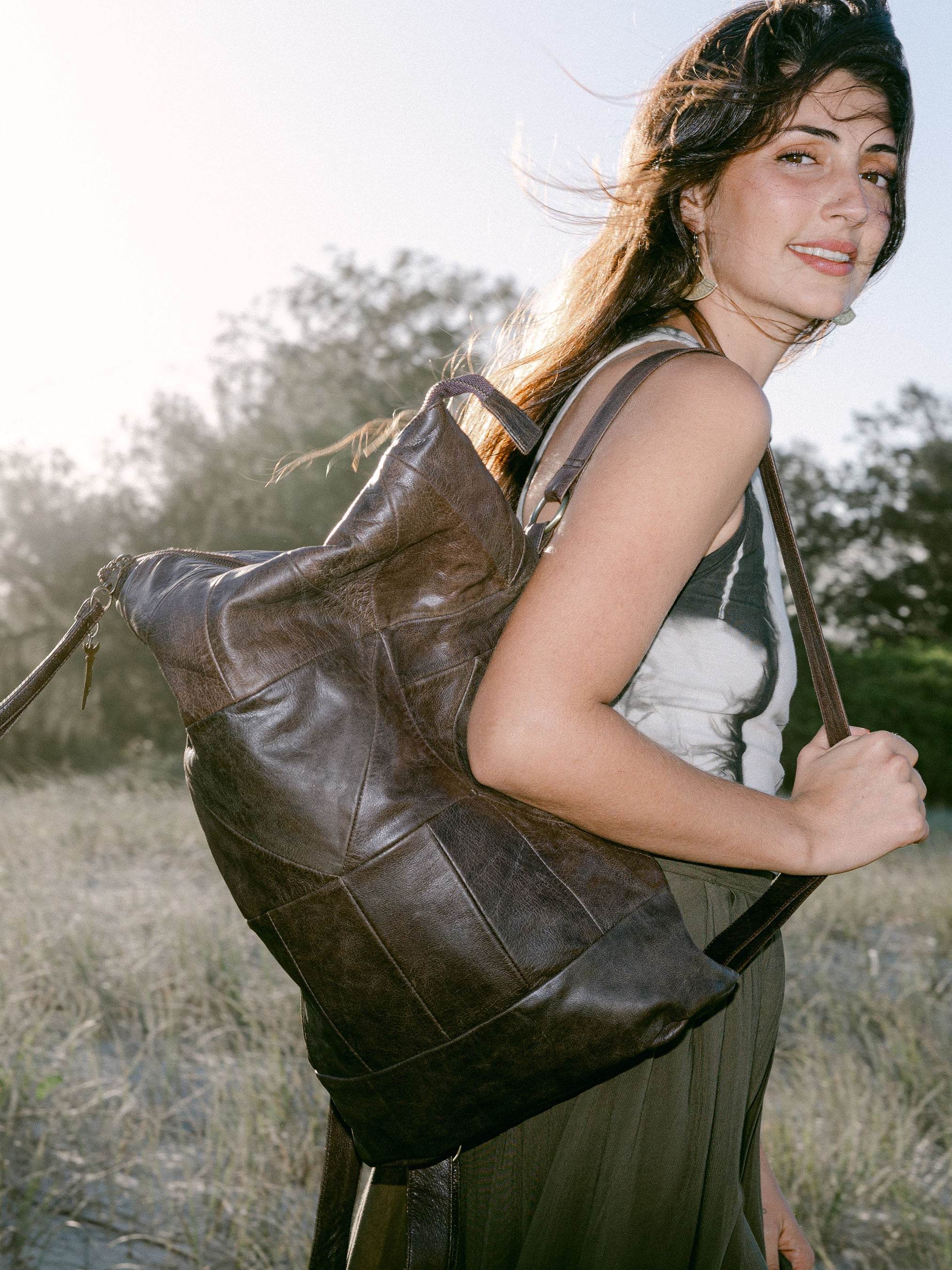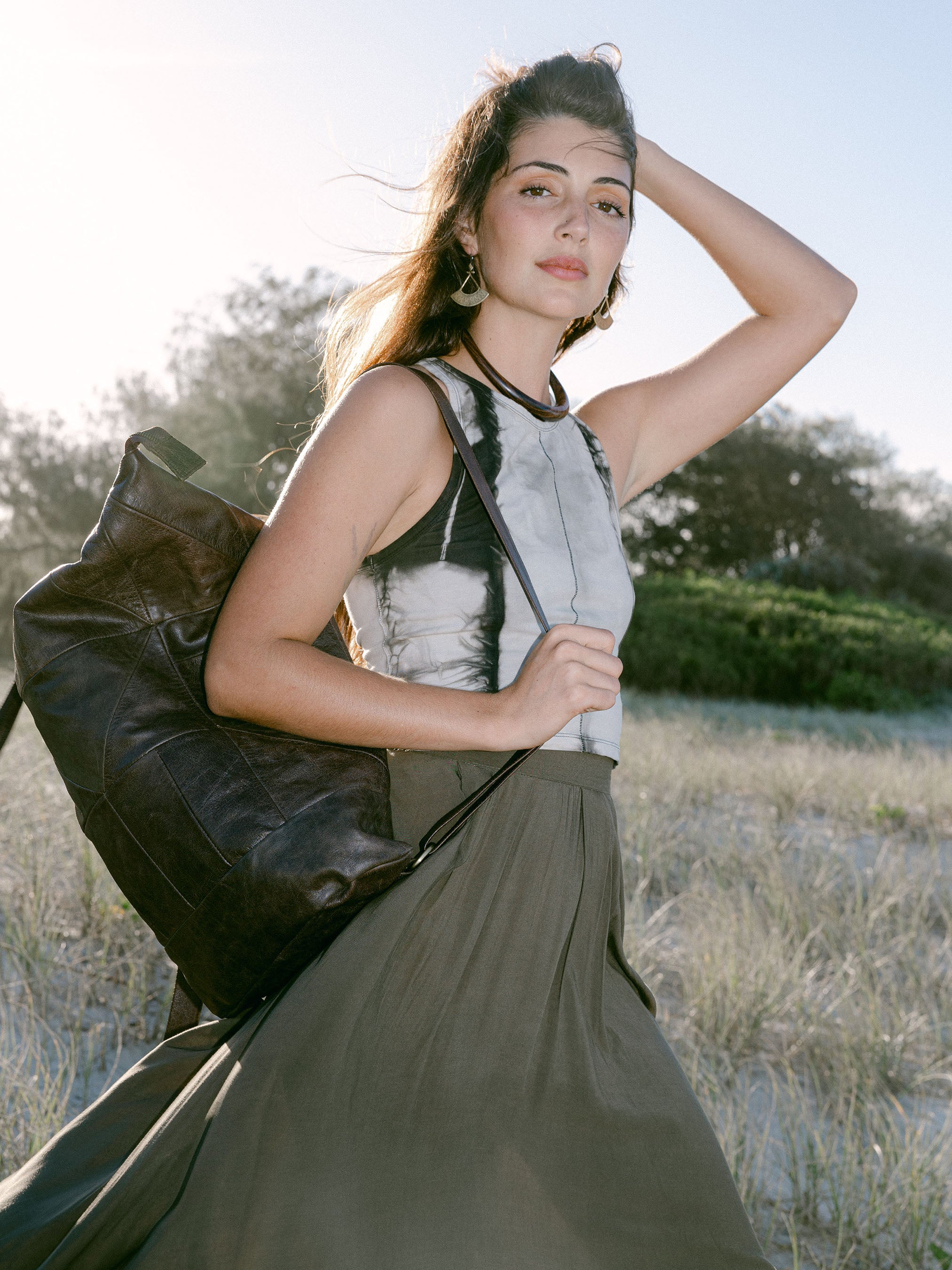Constructed from black leather sheep skin, lined with traditional balinese IKAT.