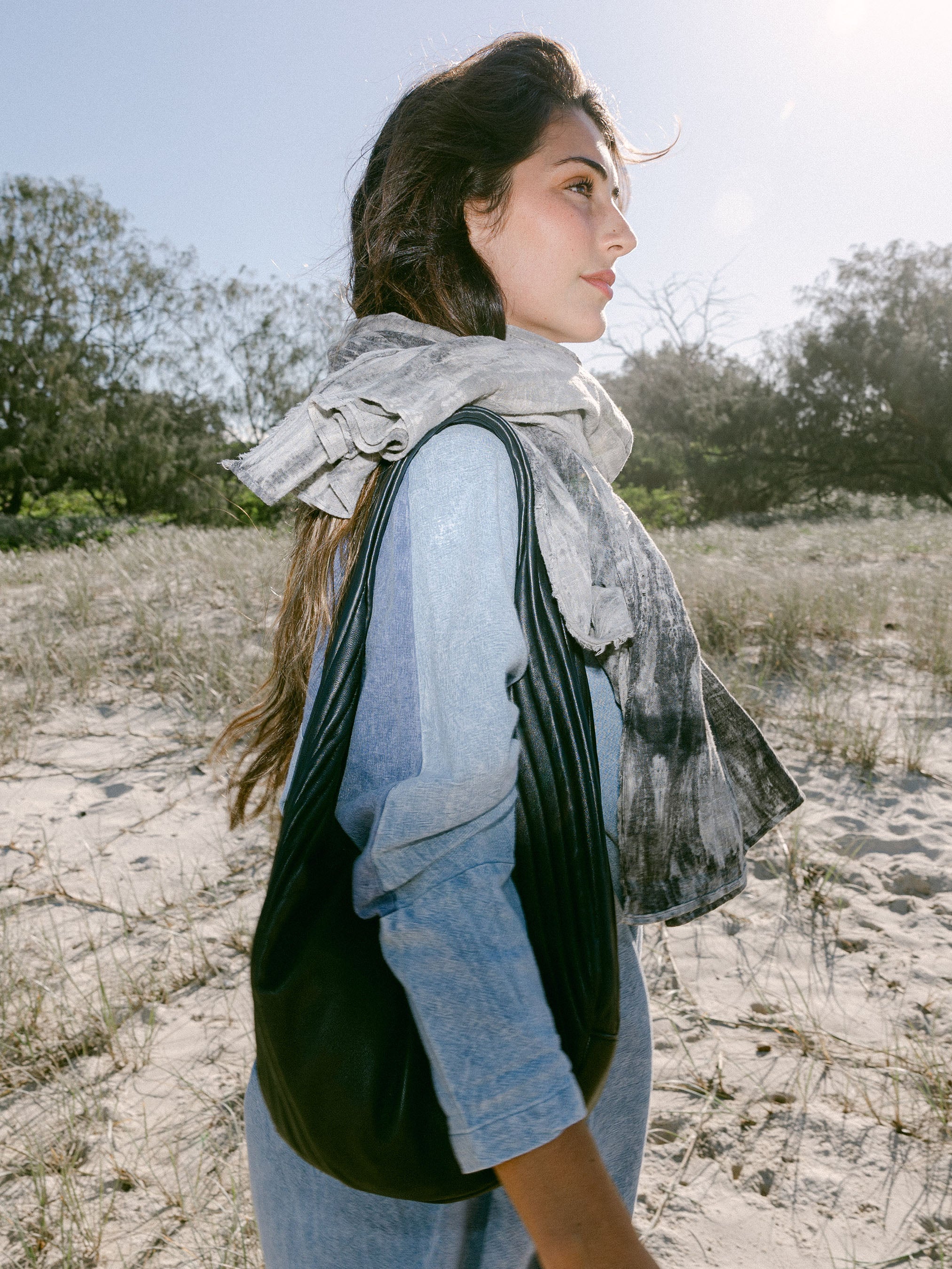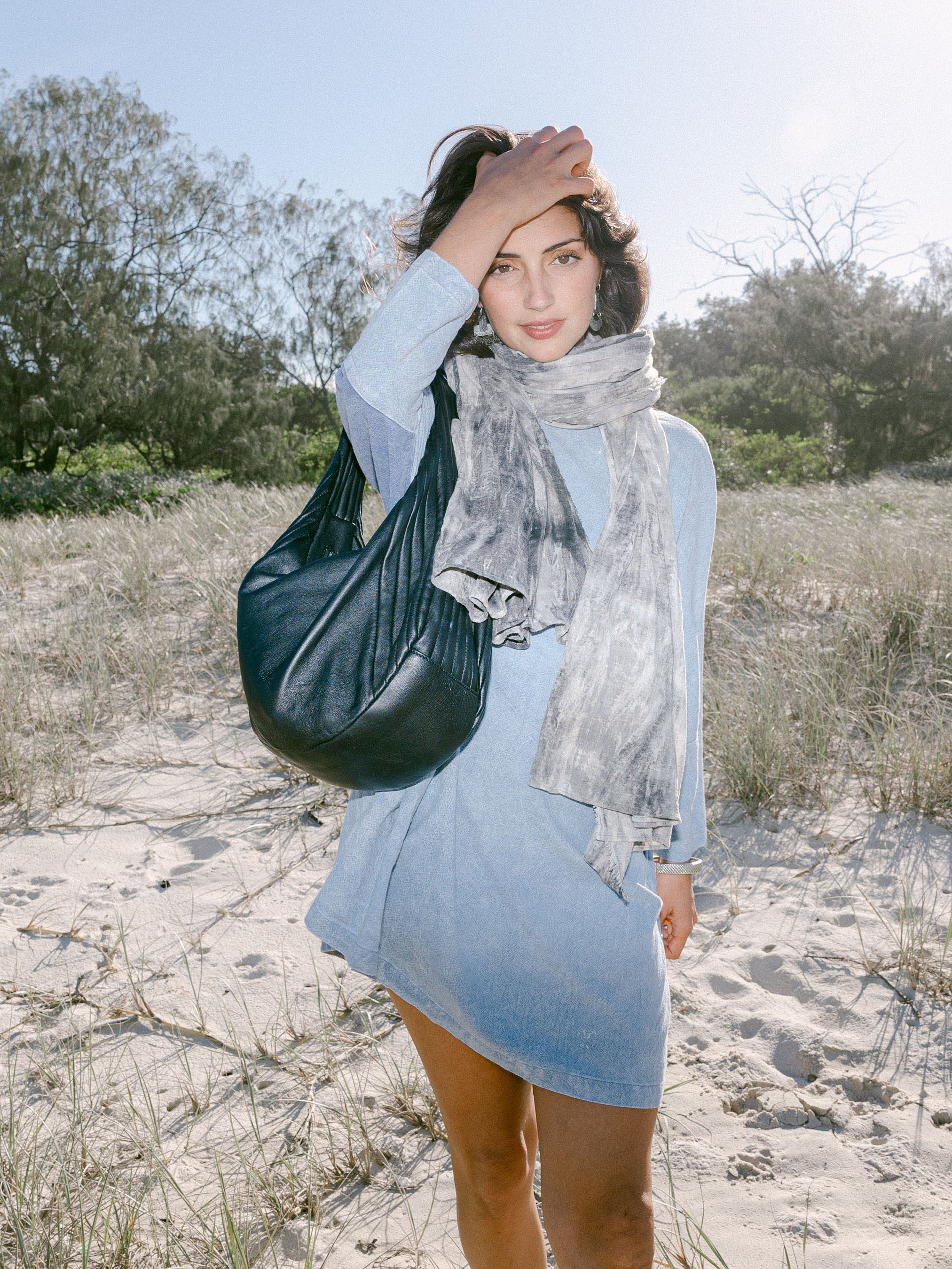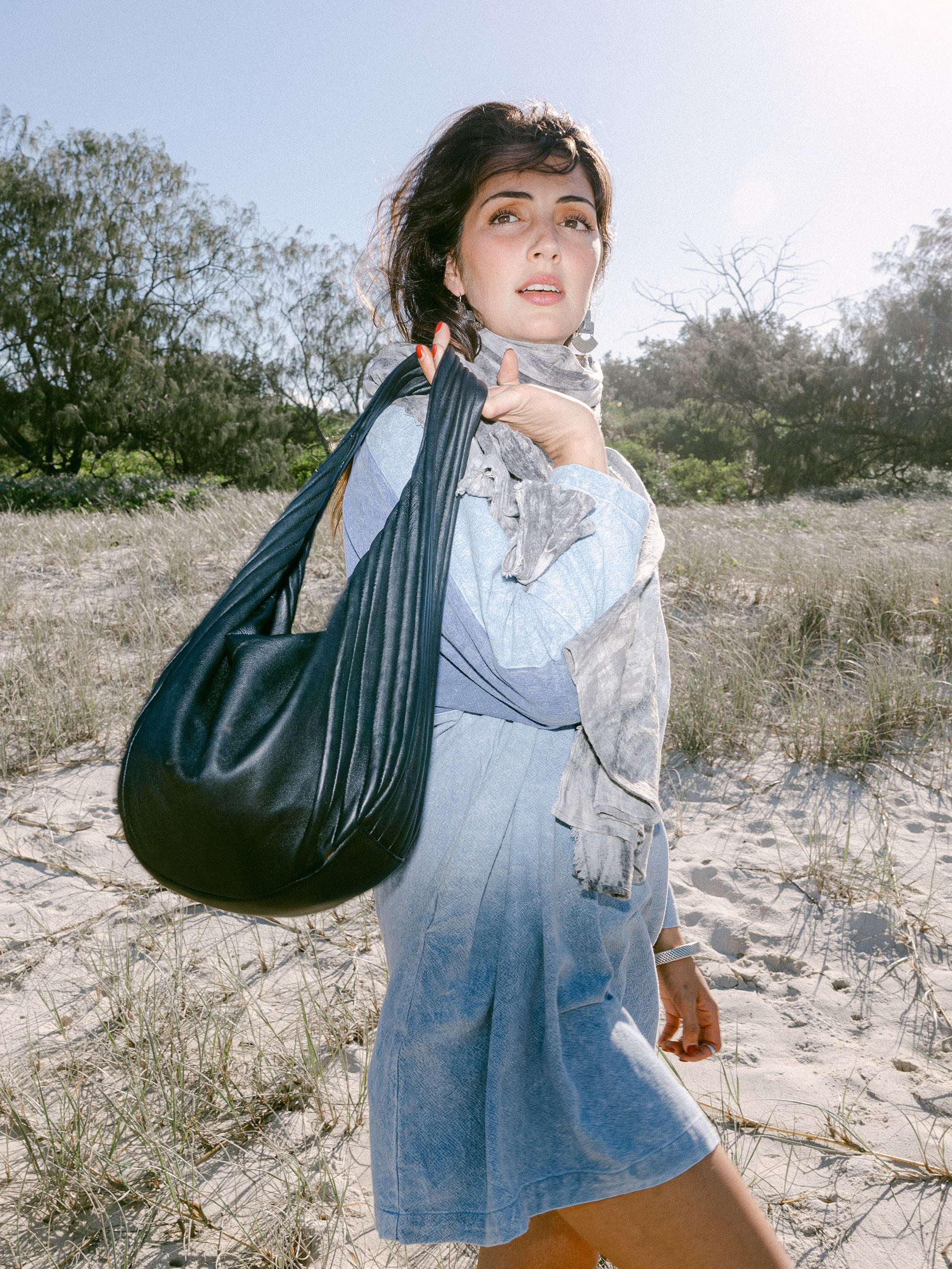 Fits snug under the arm. So easy versatile and good looking just how we like our bags.