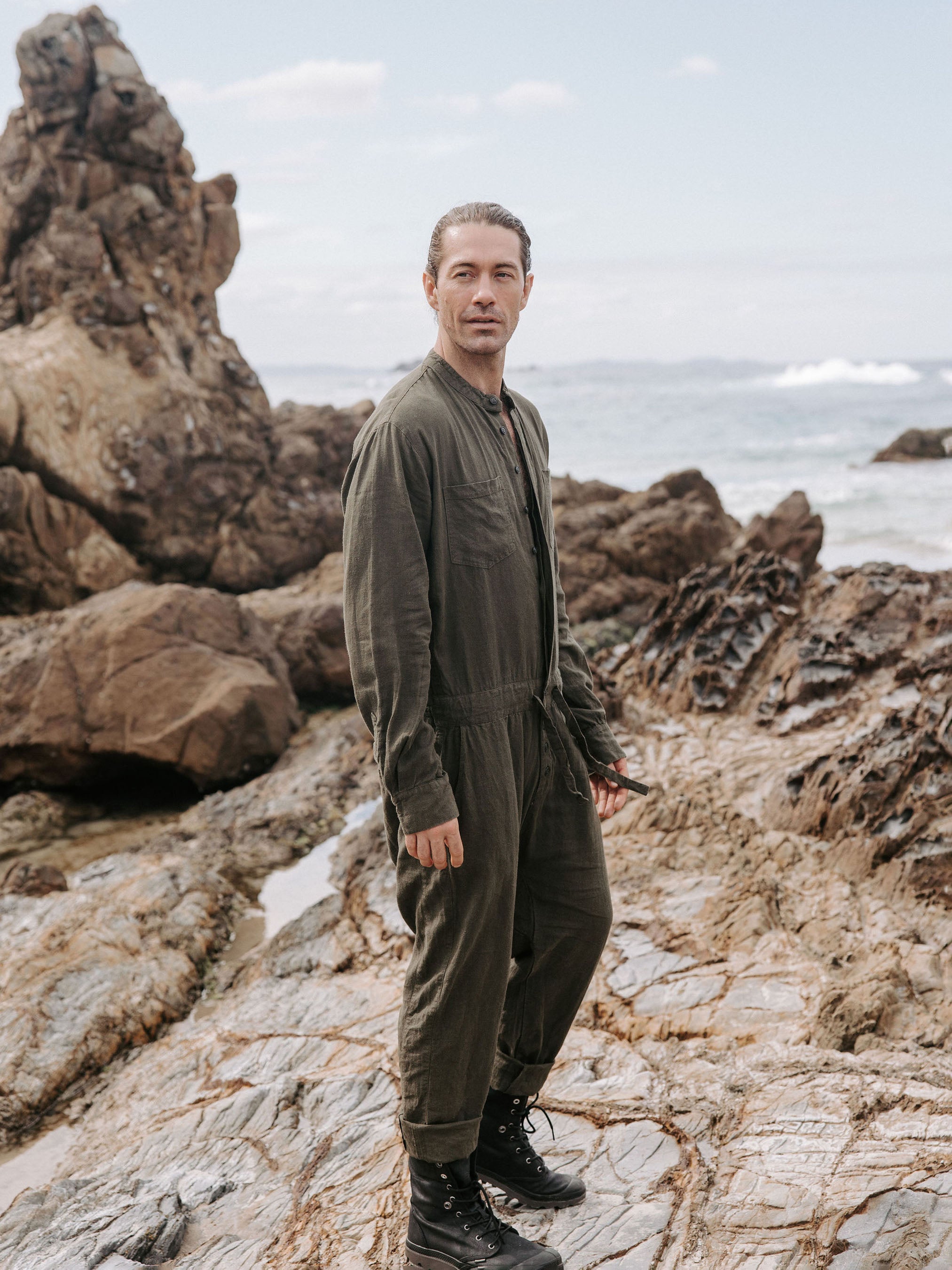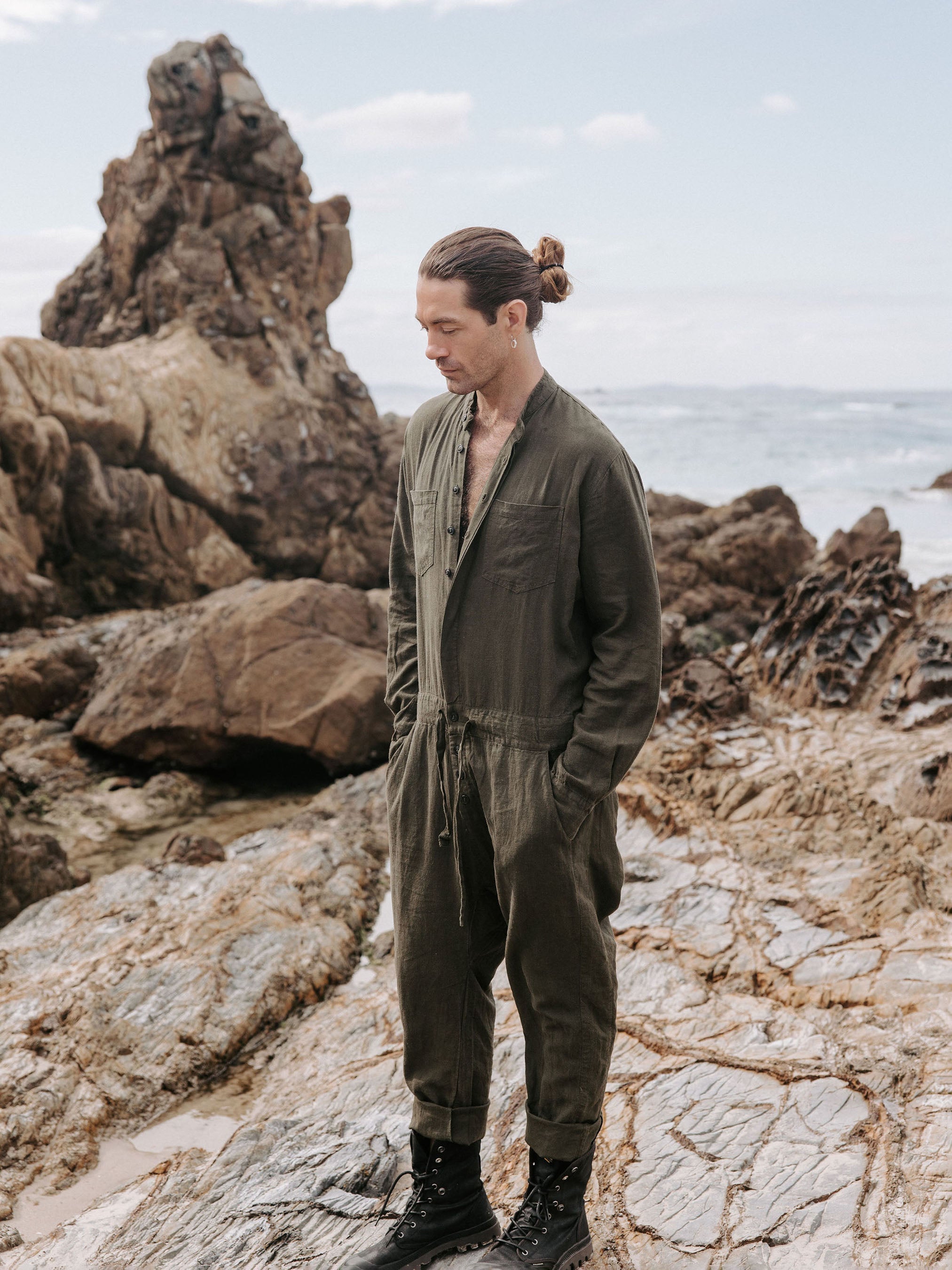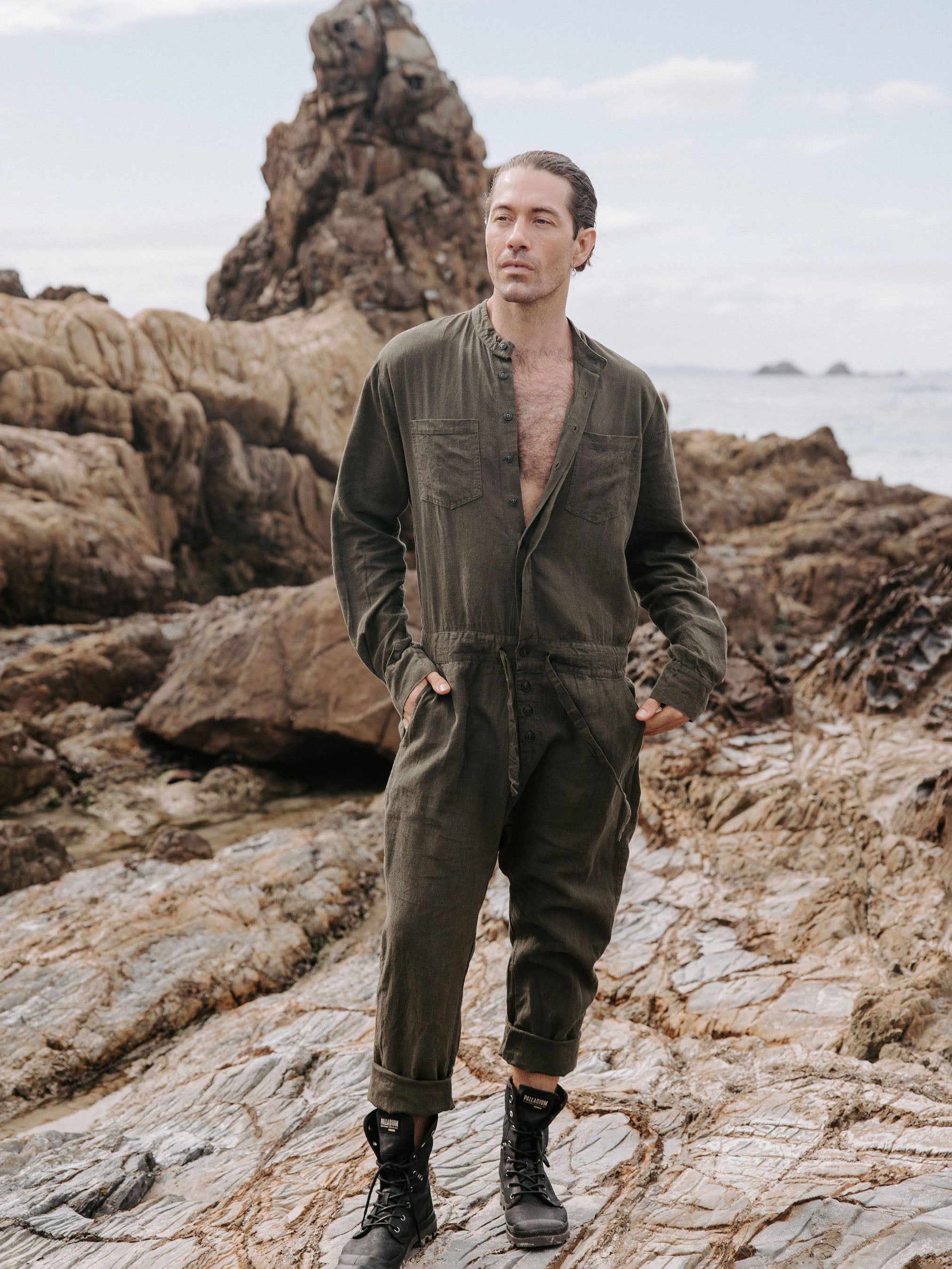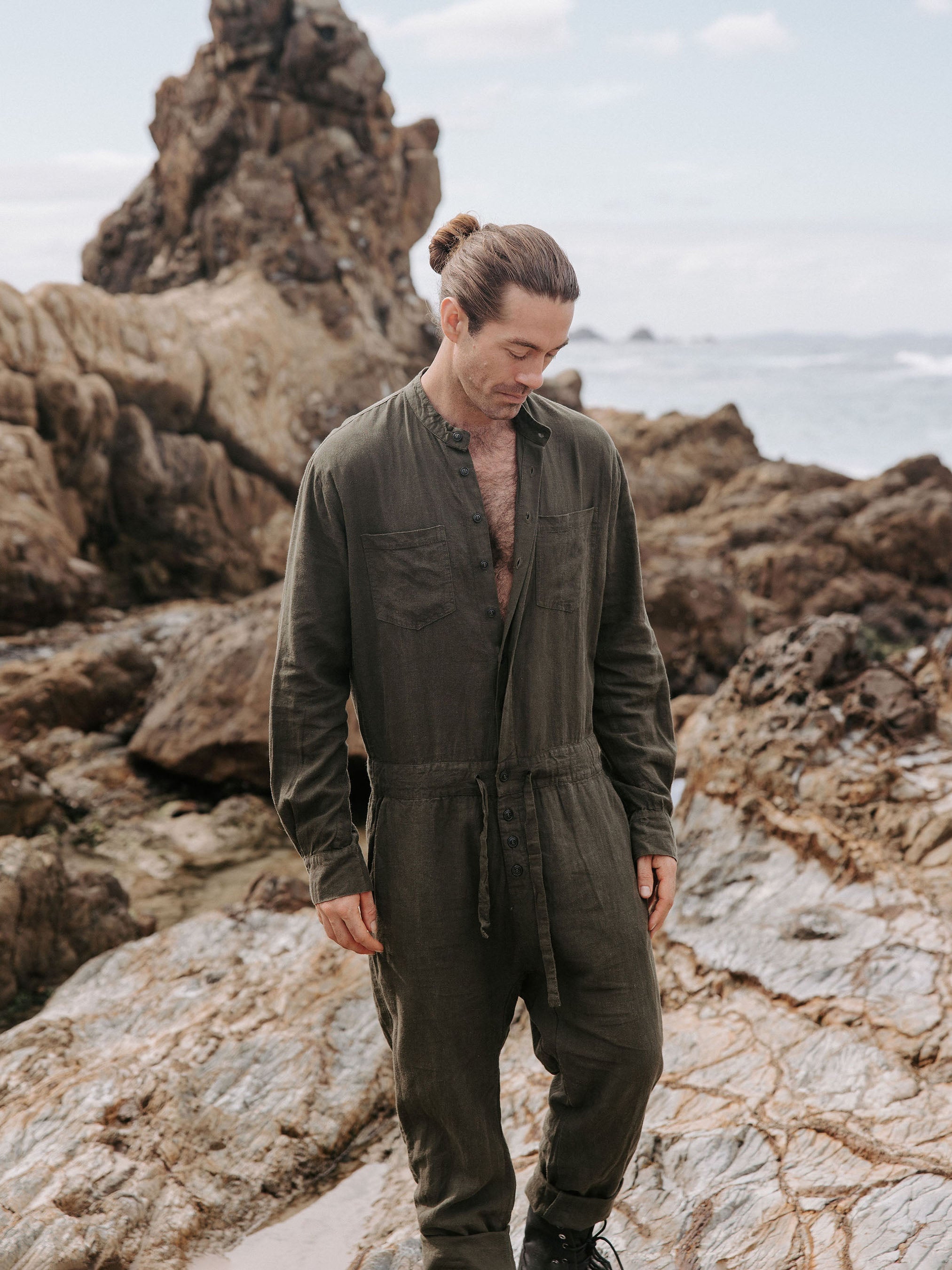 The IDIS Mens linen jumpsuit in Stone, is constructed from a mid weight linen.