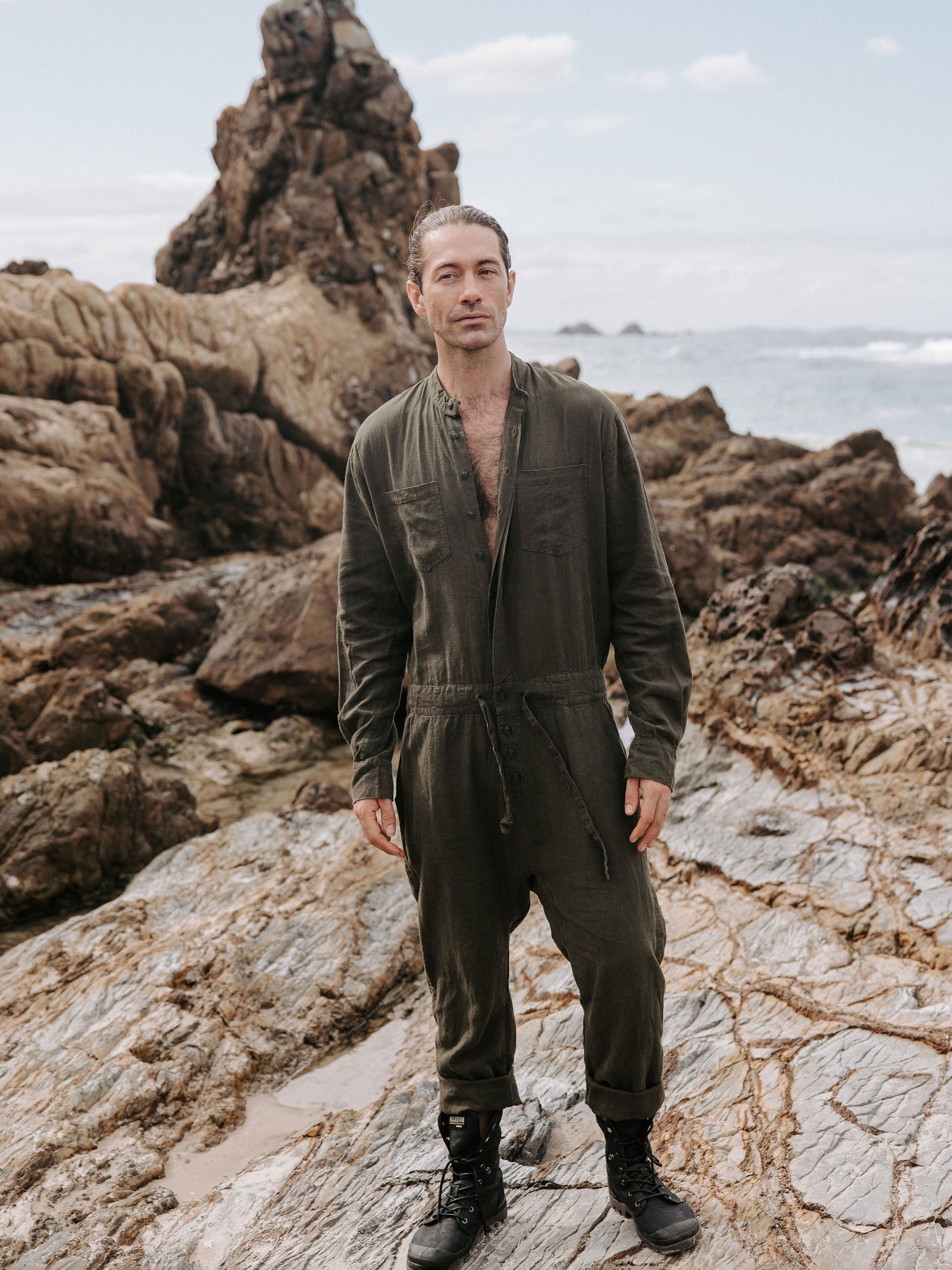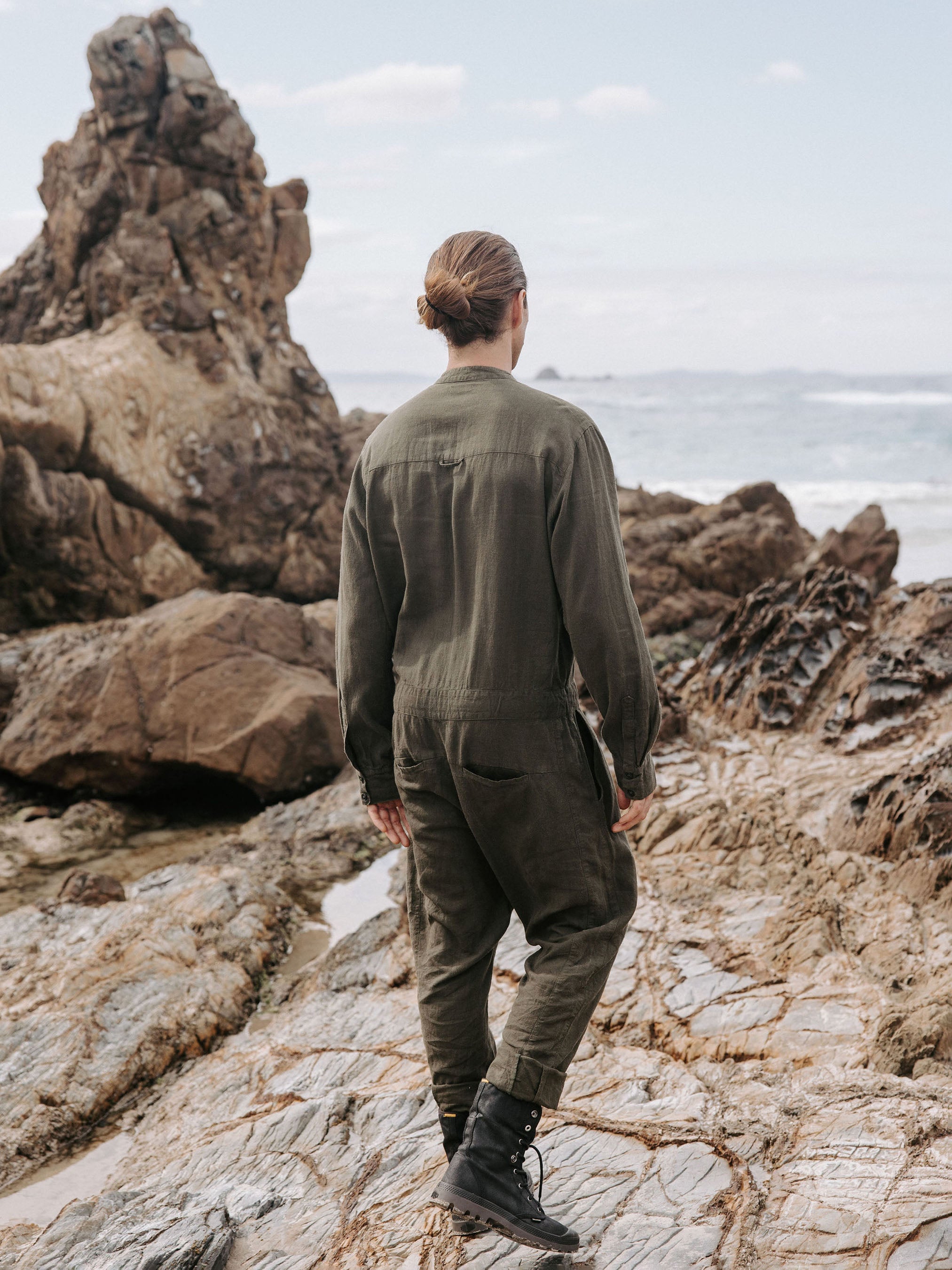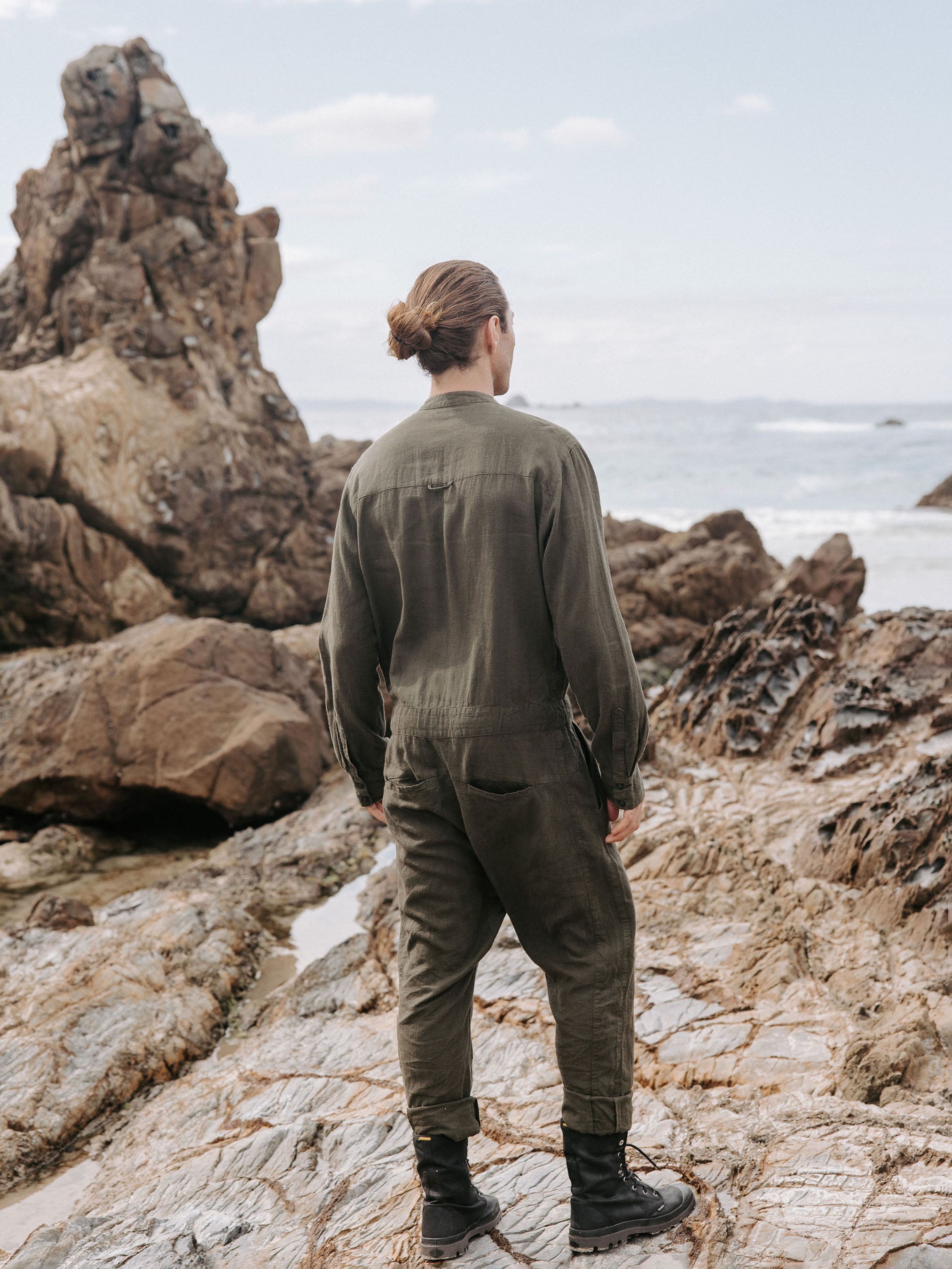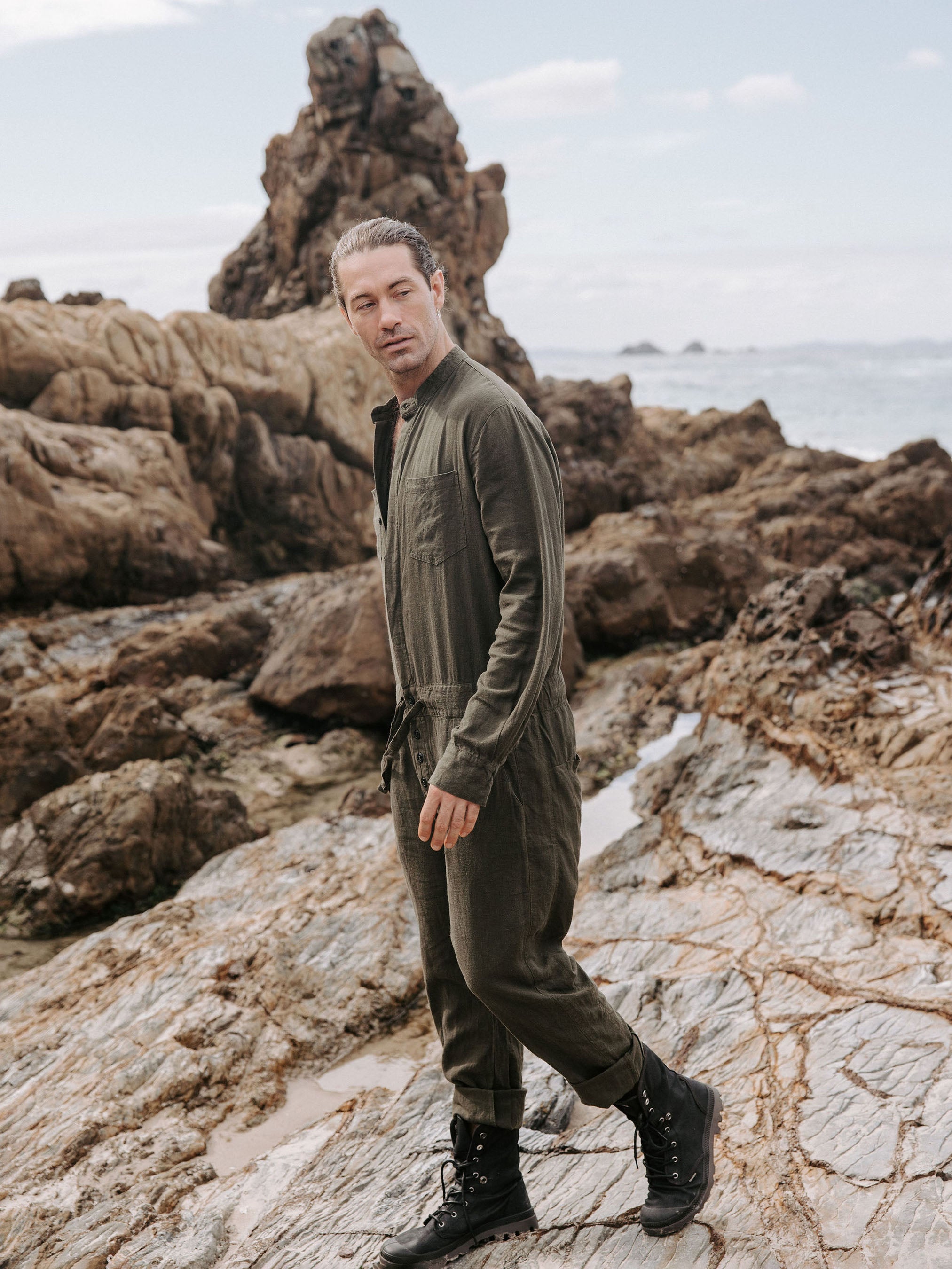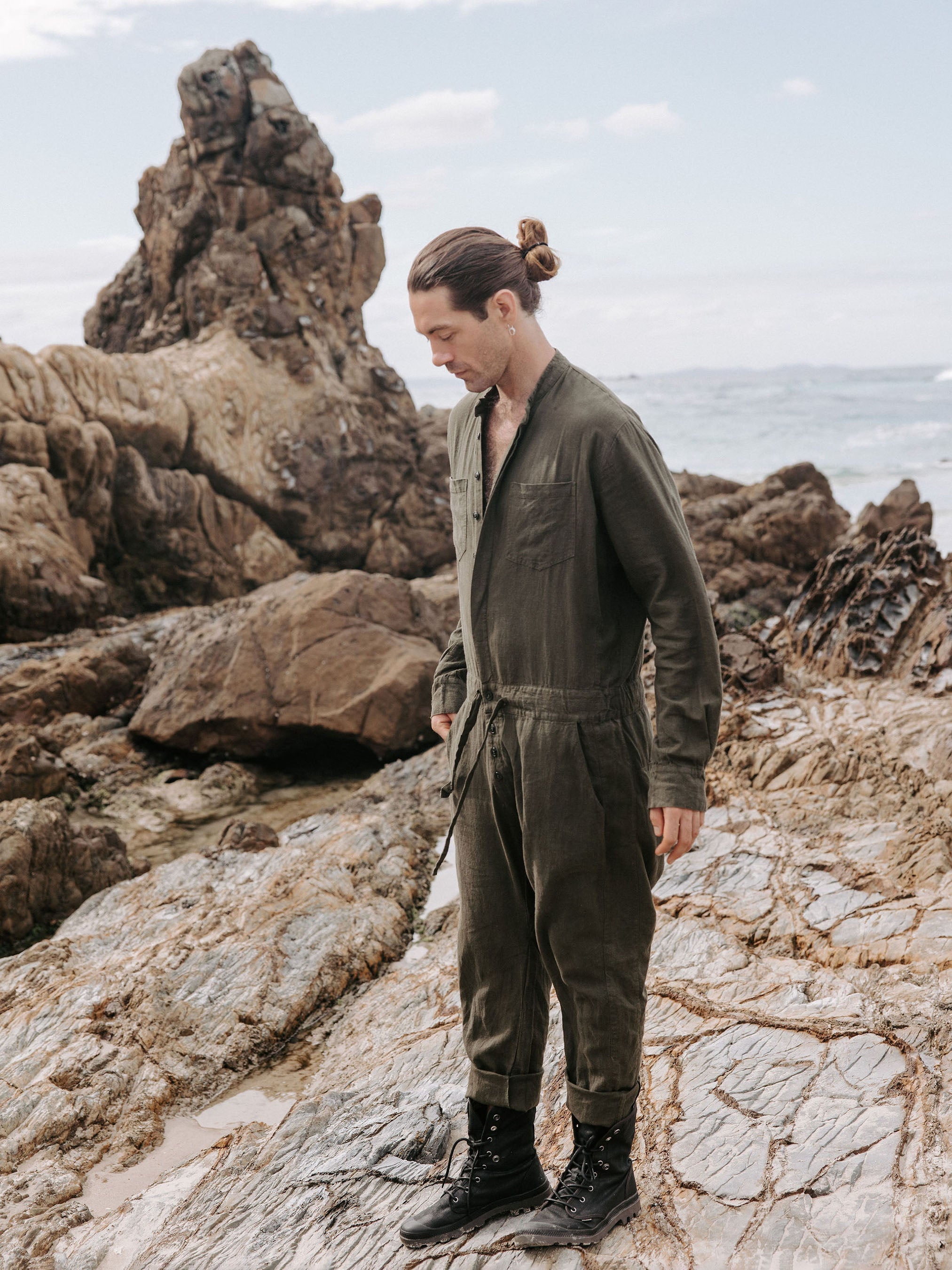 The IDIS Mens linen jumpsuit in Stone, is constructed from a mid weight linen.