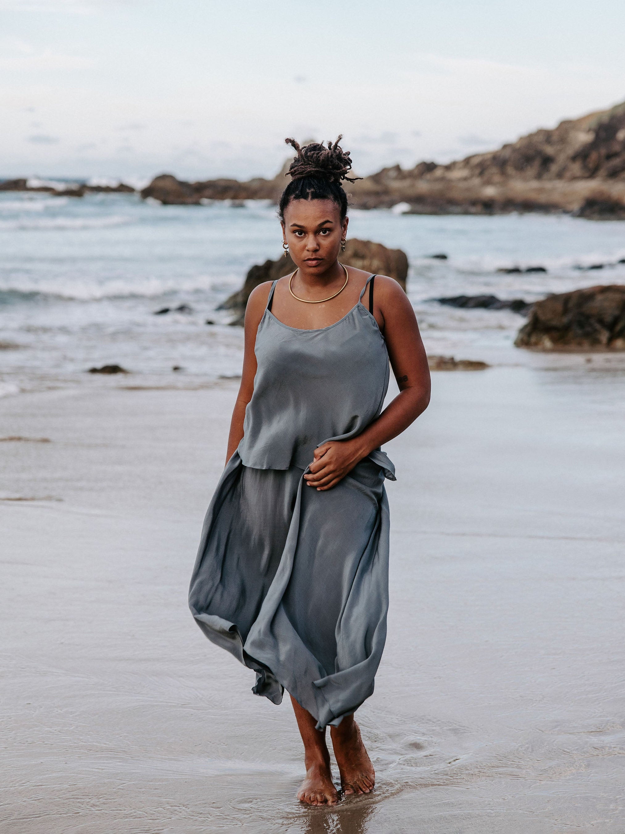 The IDIS silk Cami is made from 100% silk crepe, has a wide scoop neckline and side splits, its cut on the bias to fall just right.