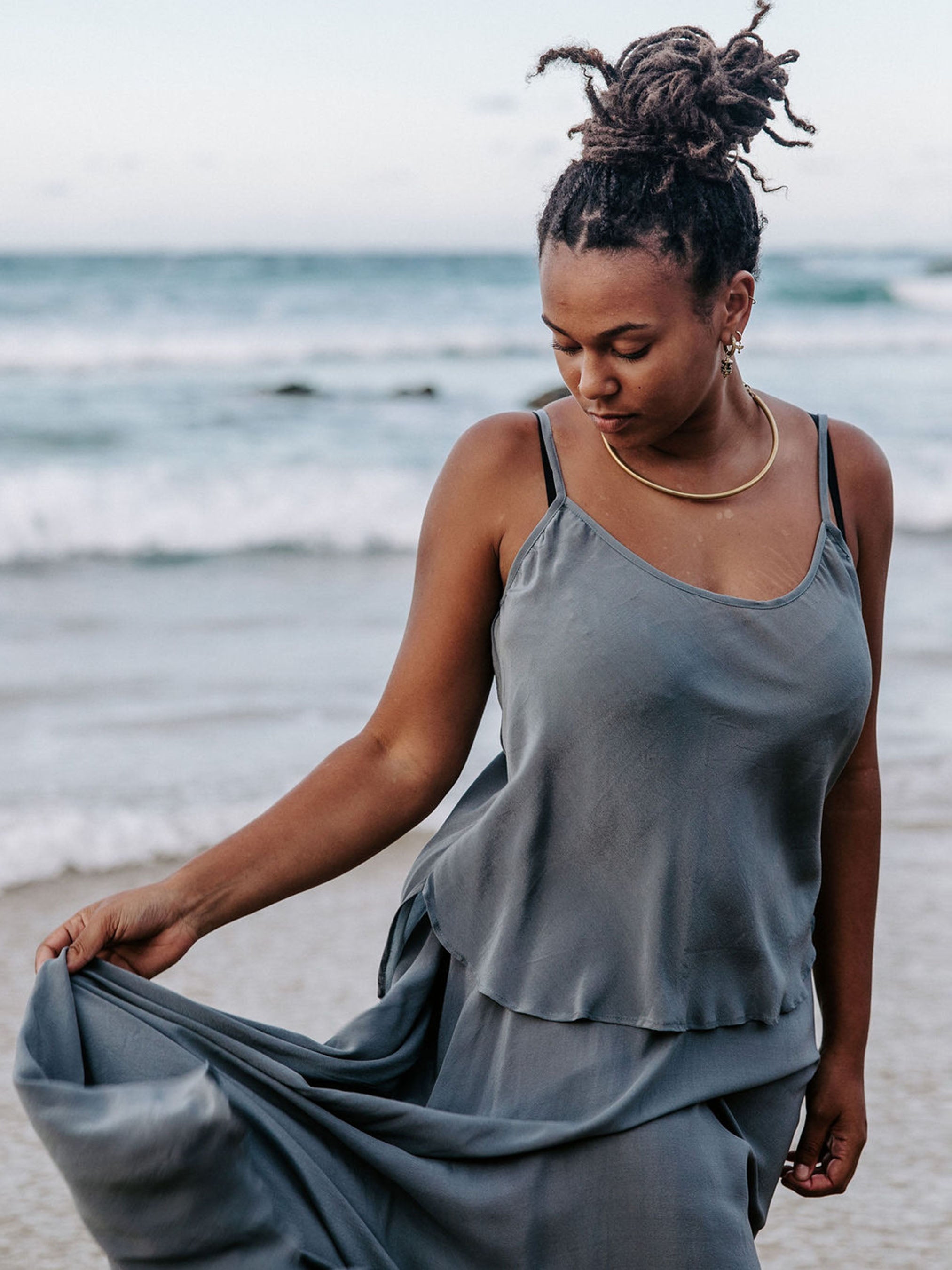 A must-have basic for every wardrobe. The silk cami can be dressed up elegantly with the IDIS silk Peony skirt or thrown on with a pair of jeans for a more casual feel.