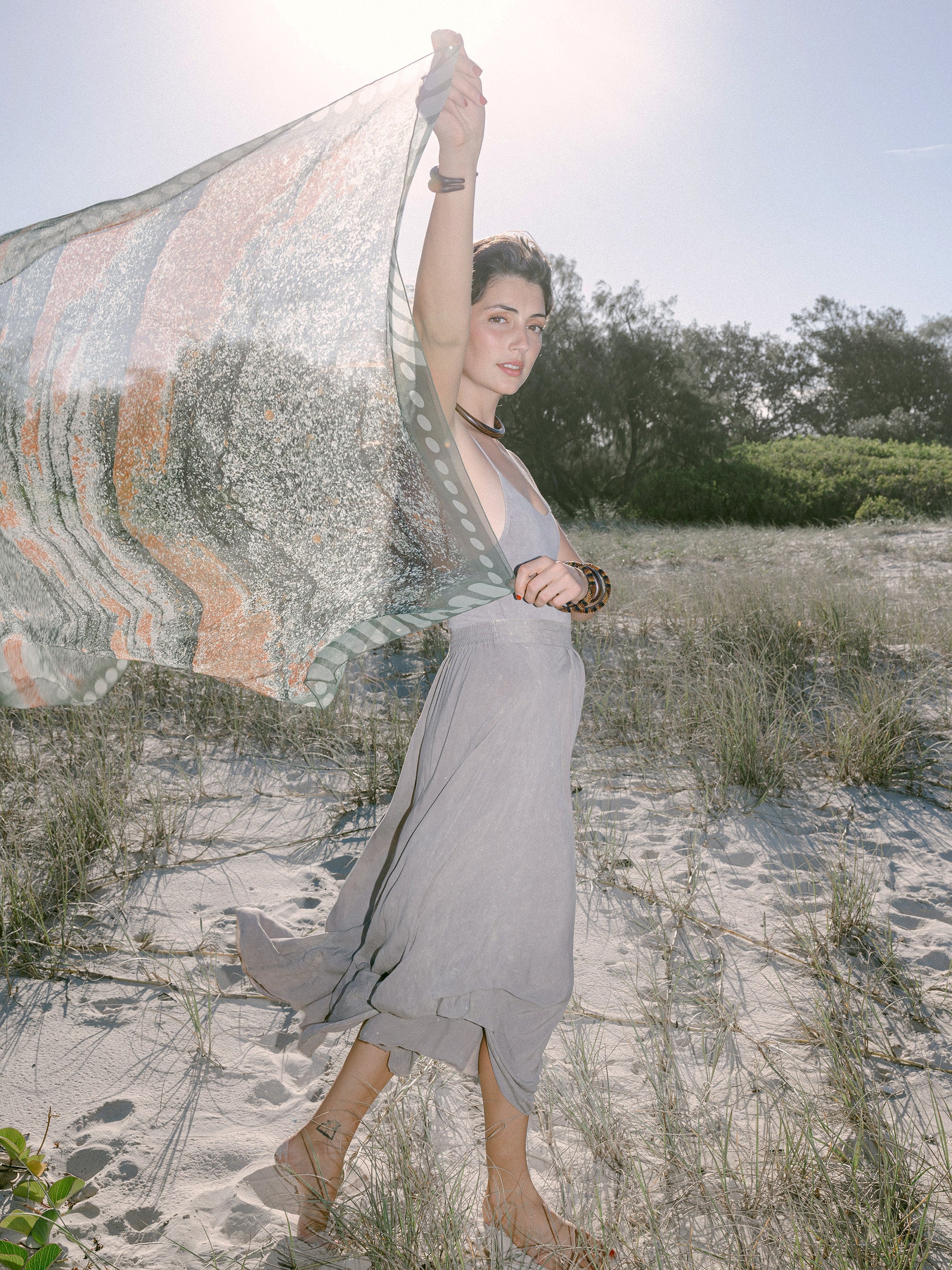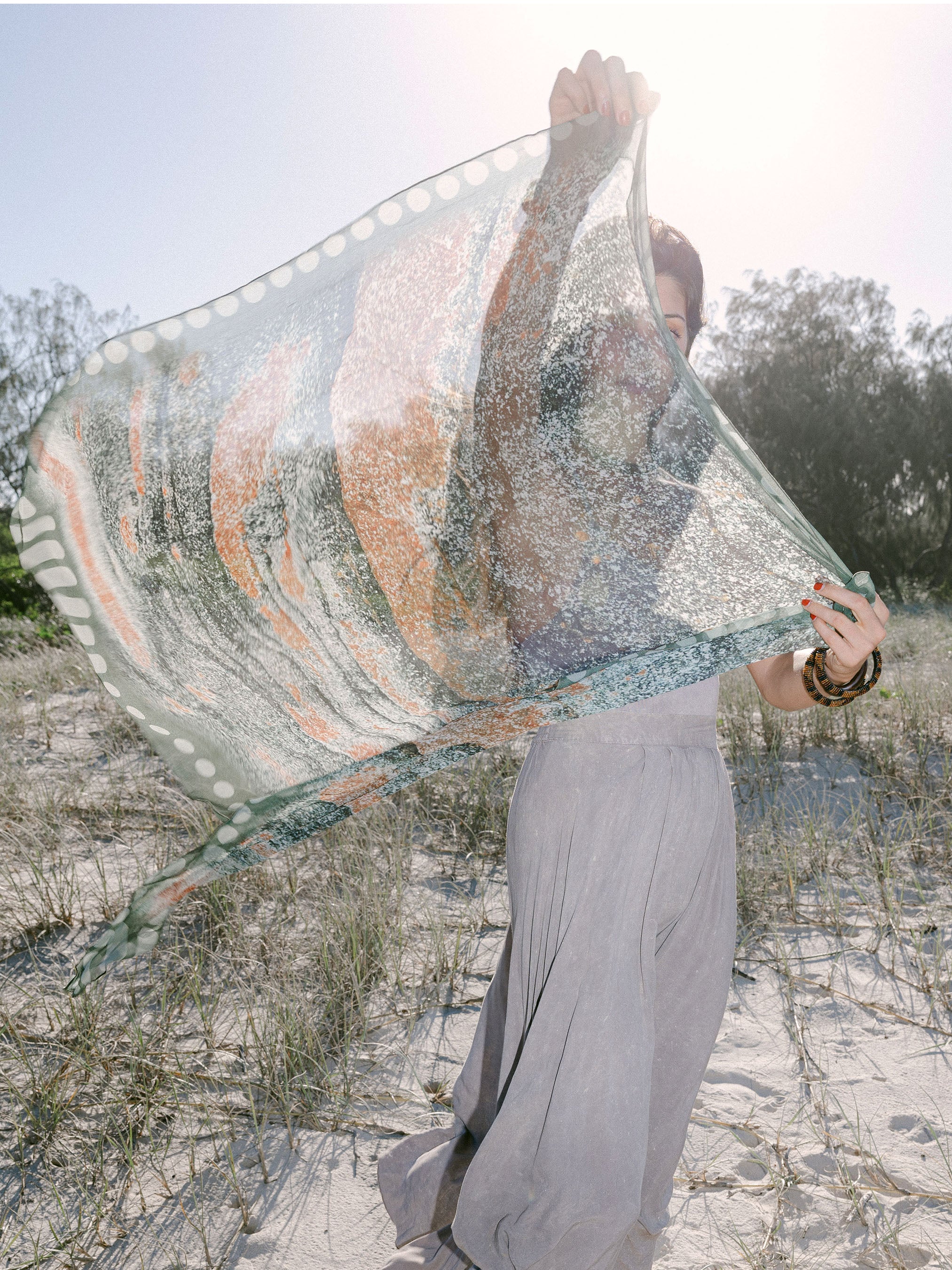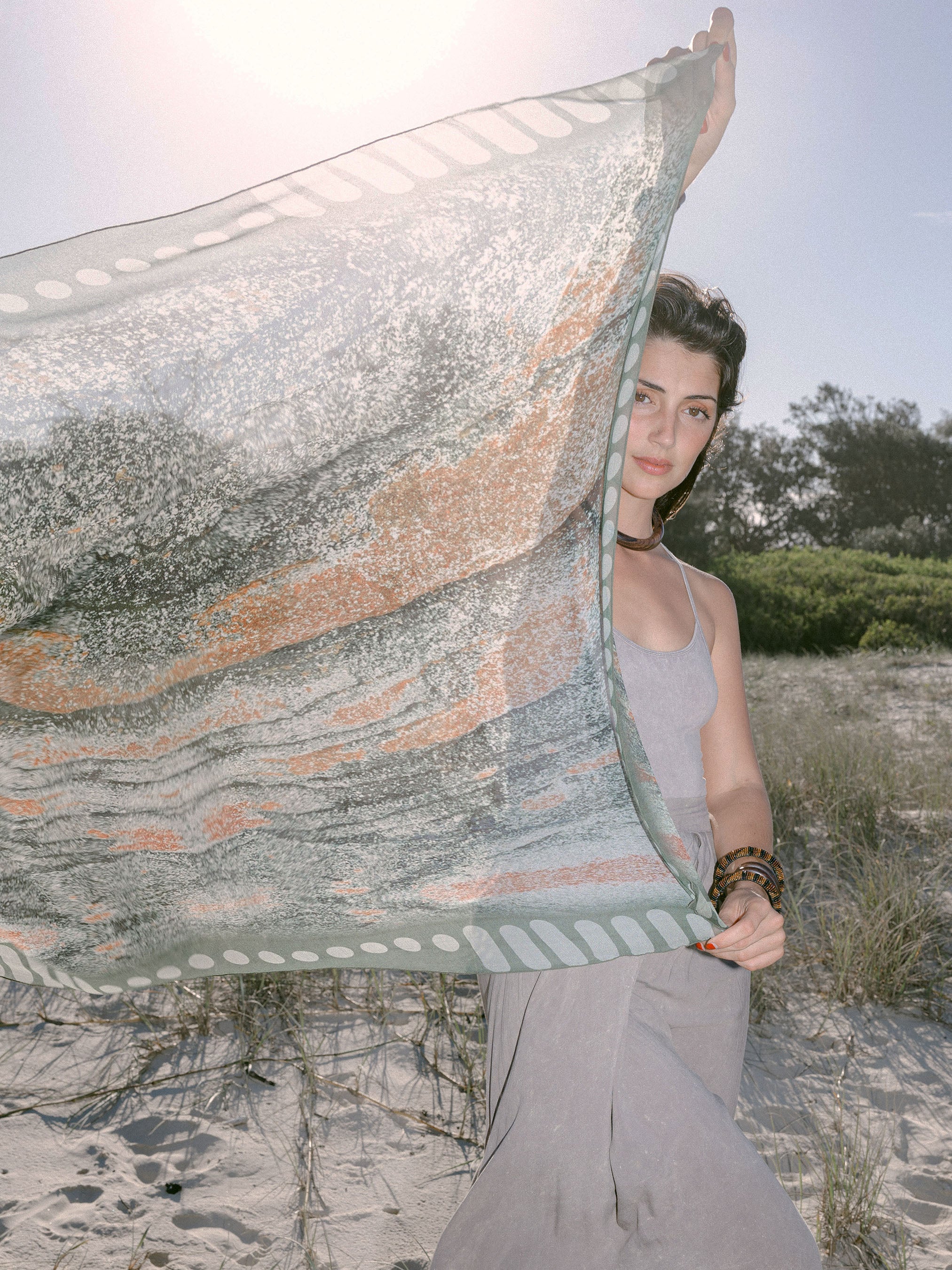 Digital print on silk chiffon, in collaboration with the stunning coastline down in Tasmania, Australia "The bay of Fires".