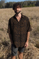 Constructed from a light weight rayon The fabric is dyed using a traditional Balinese batik technique, features 2 front pockets, and button down front.