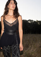 The main body is a mid weight rayon giving it that drape we love, while the neckline is in a silk chiffon for a touch of lux and transparency. Straps are adjustable.